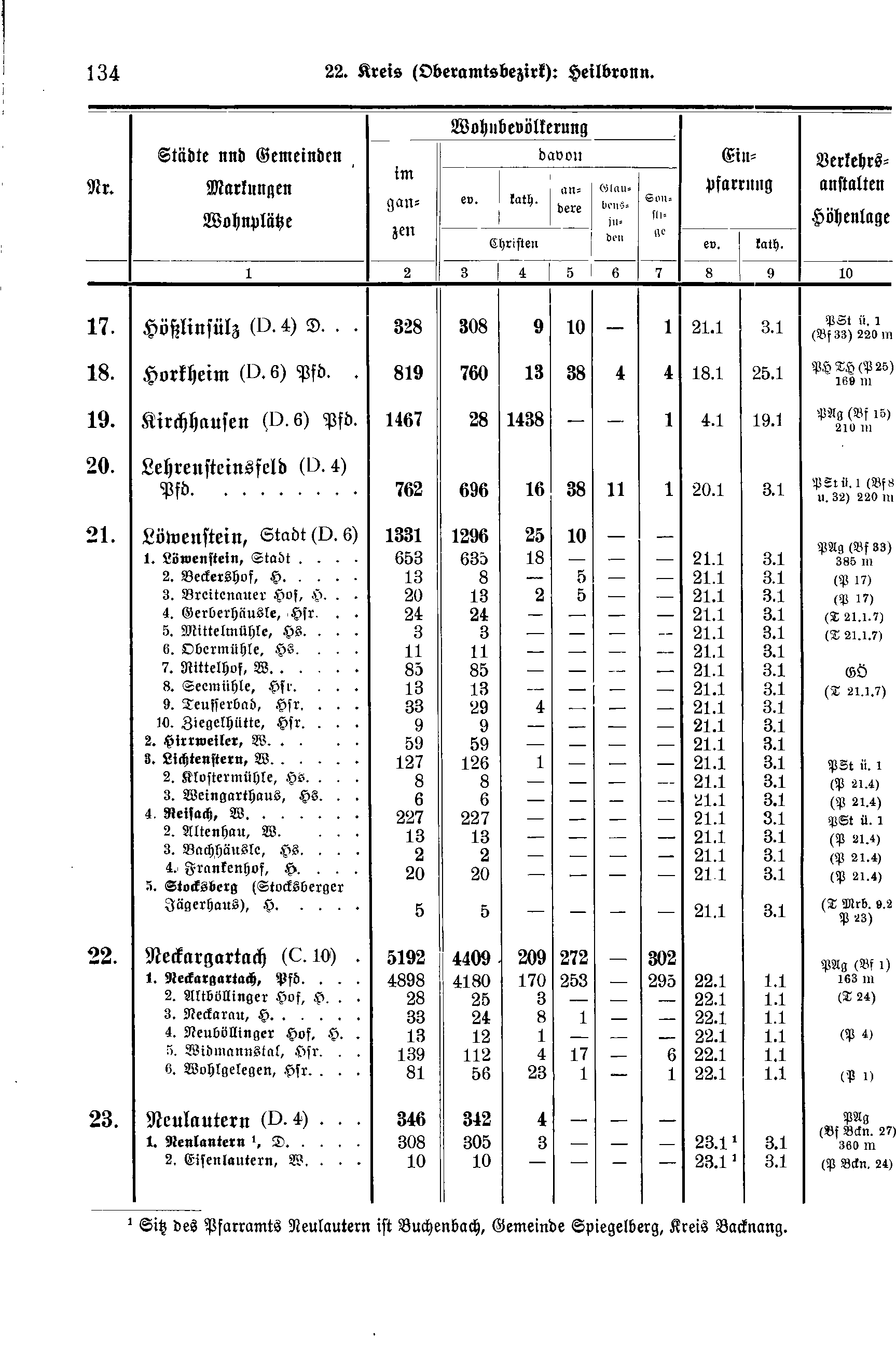 | 22. | Neckargartach (C.10) | 5192 | 4409 | 209 | 272 | - | 302 | |||
