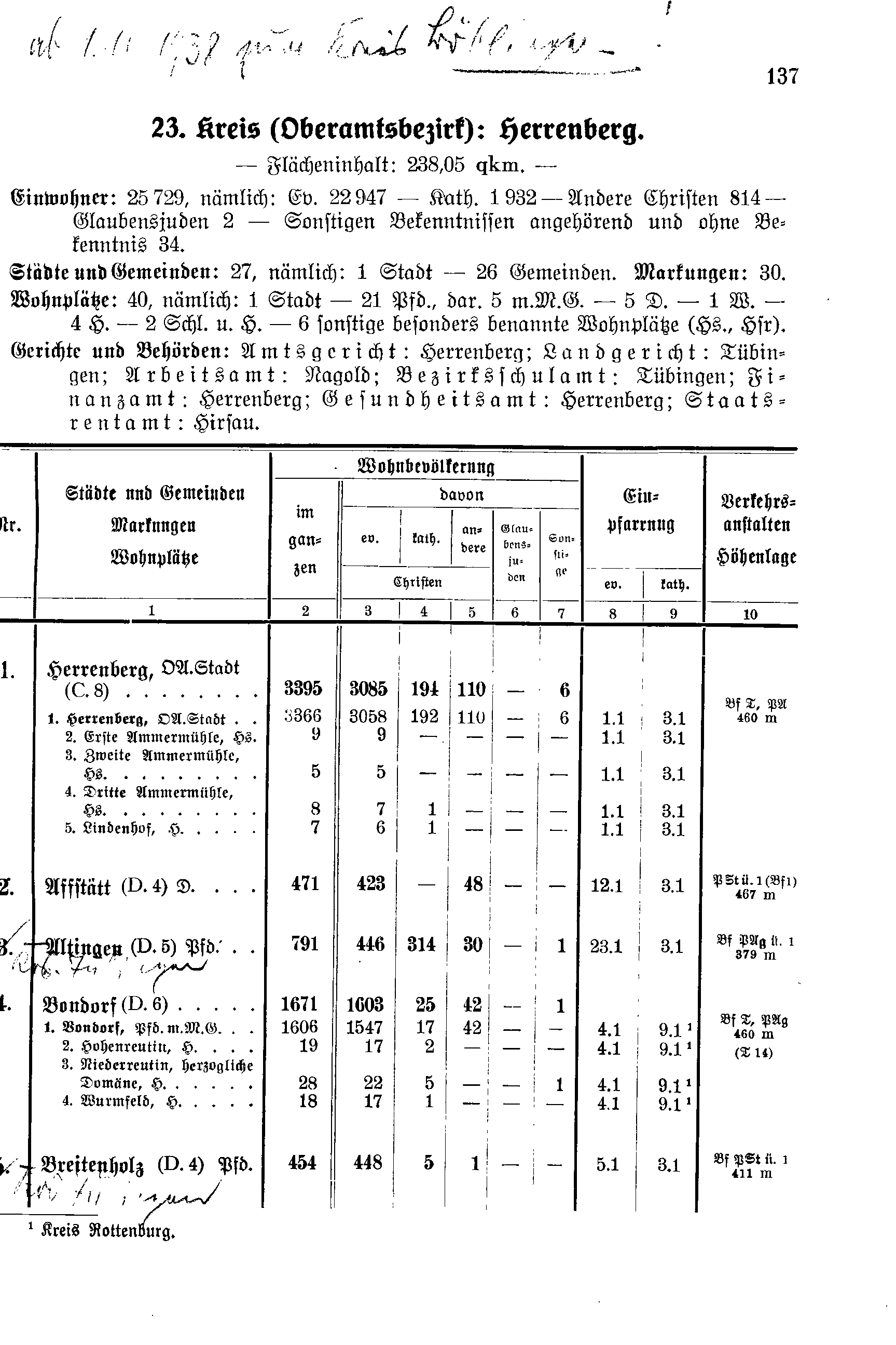 23. Kreis (Oberamtsbezirk): Herrenberg.