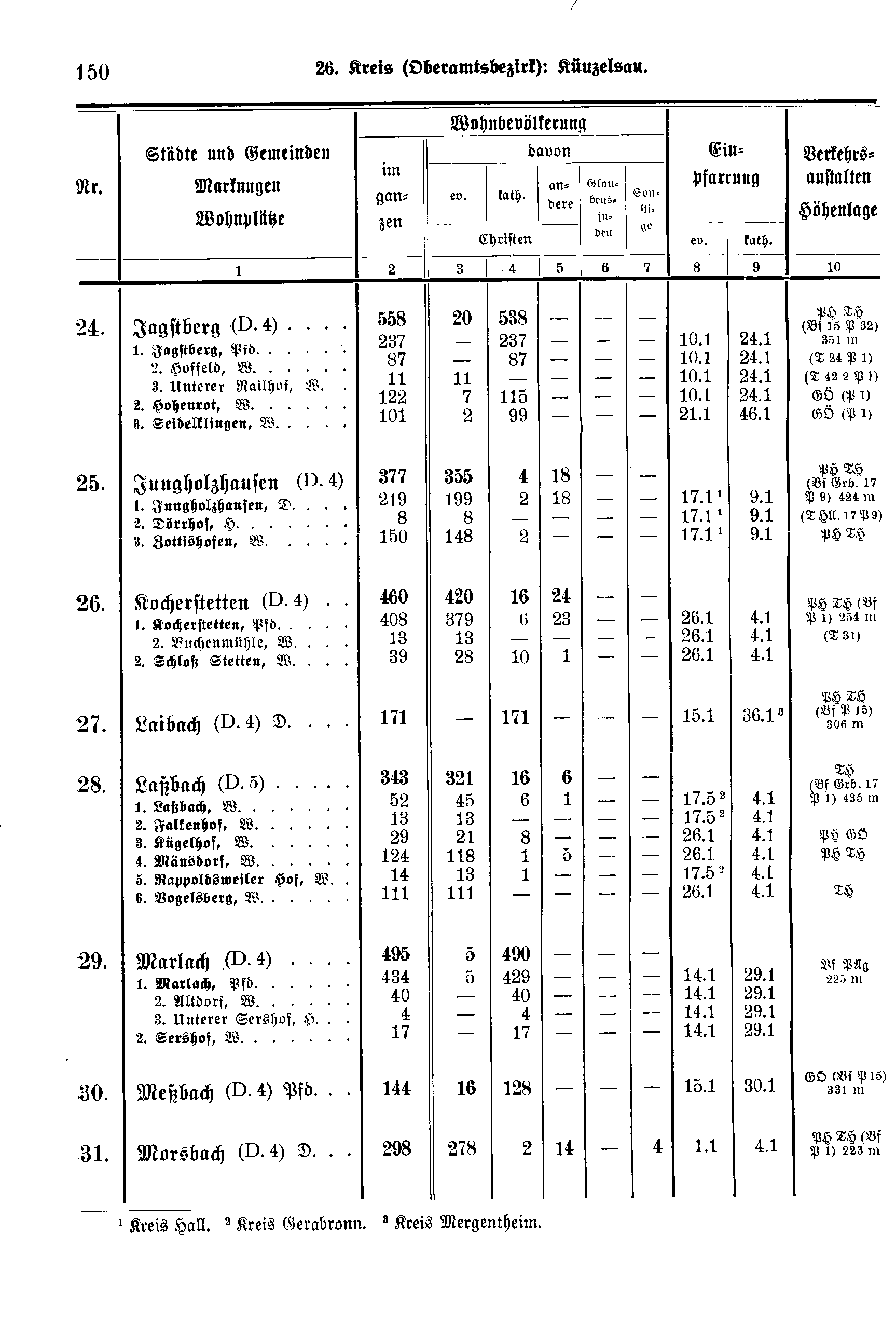 Wohnbevölkerung | Einpfarrung | Verkehrs-anstalten Höhenlage | ||||||