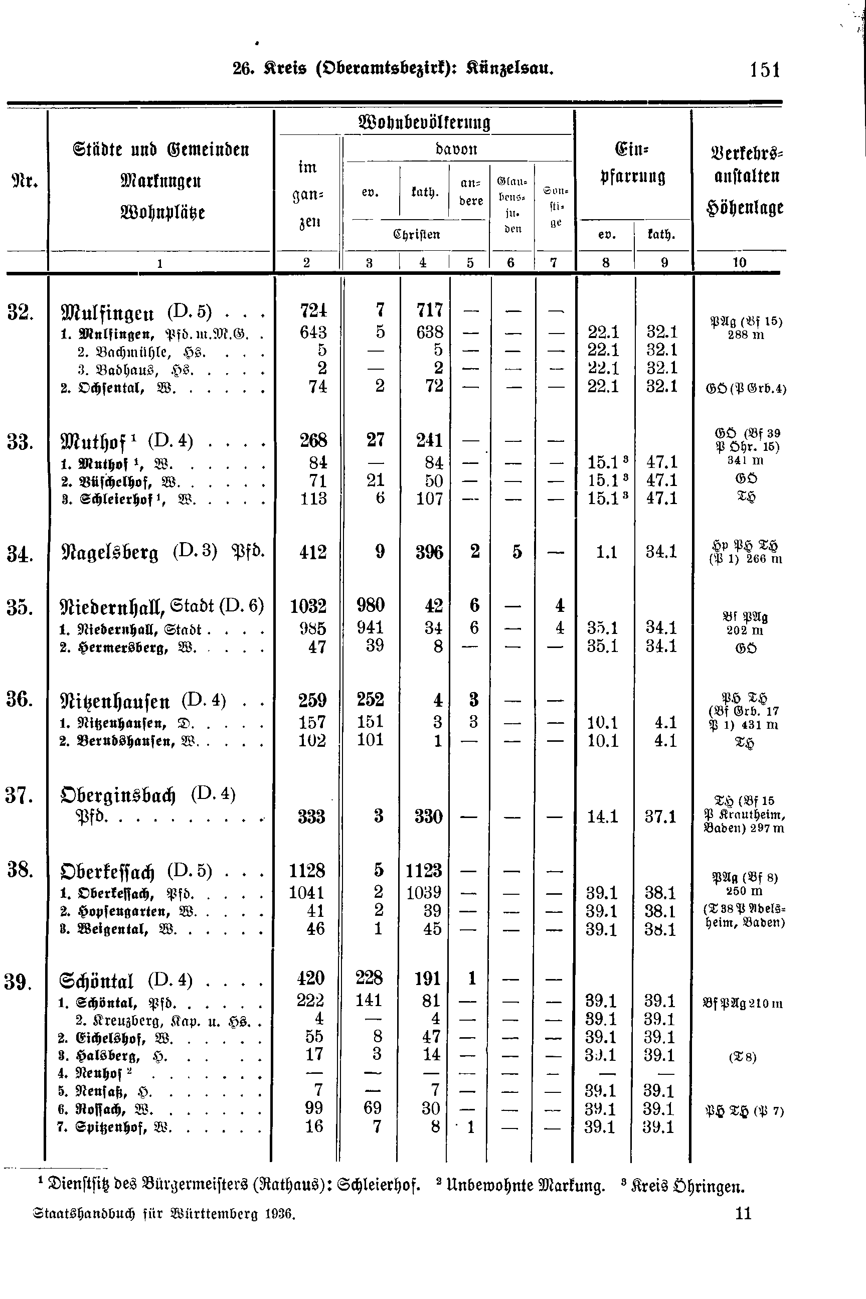 | 1. Niedernhall, Stadt | 985 | 941 | 34 | 6 | - | 4 | 35.1 | 34.1 | Bf PAg 202m | |