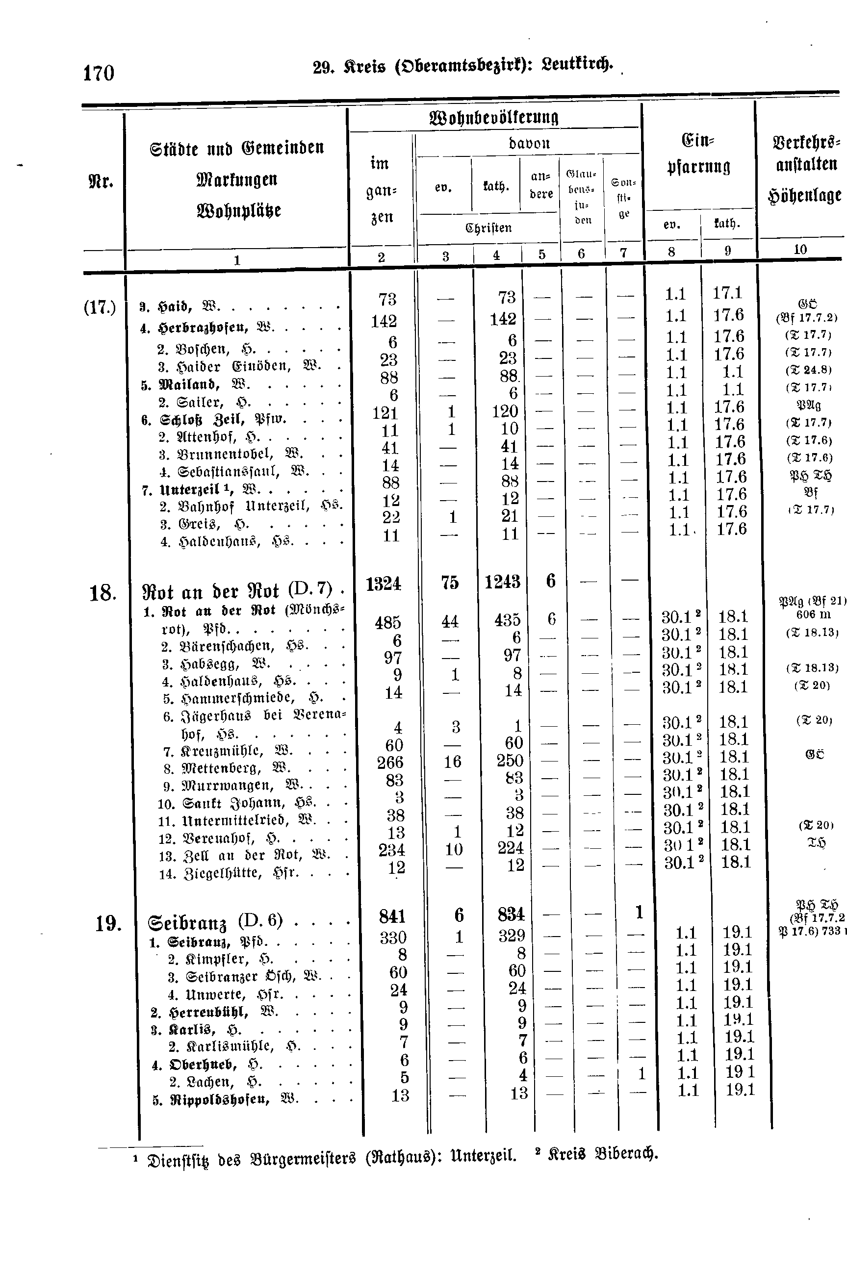 Wohnbevölkerung | Einpfarrung | Verkehrs-anstalten Höhenlage | ||||||