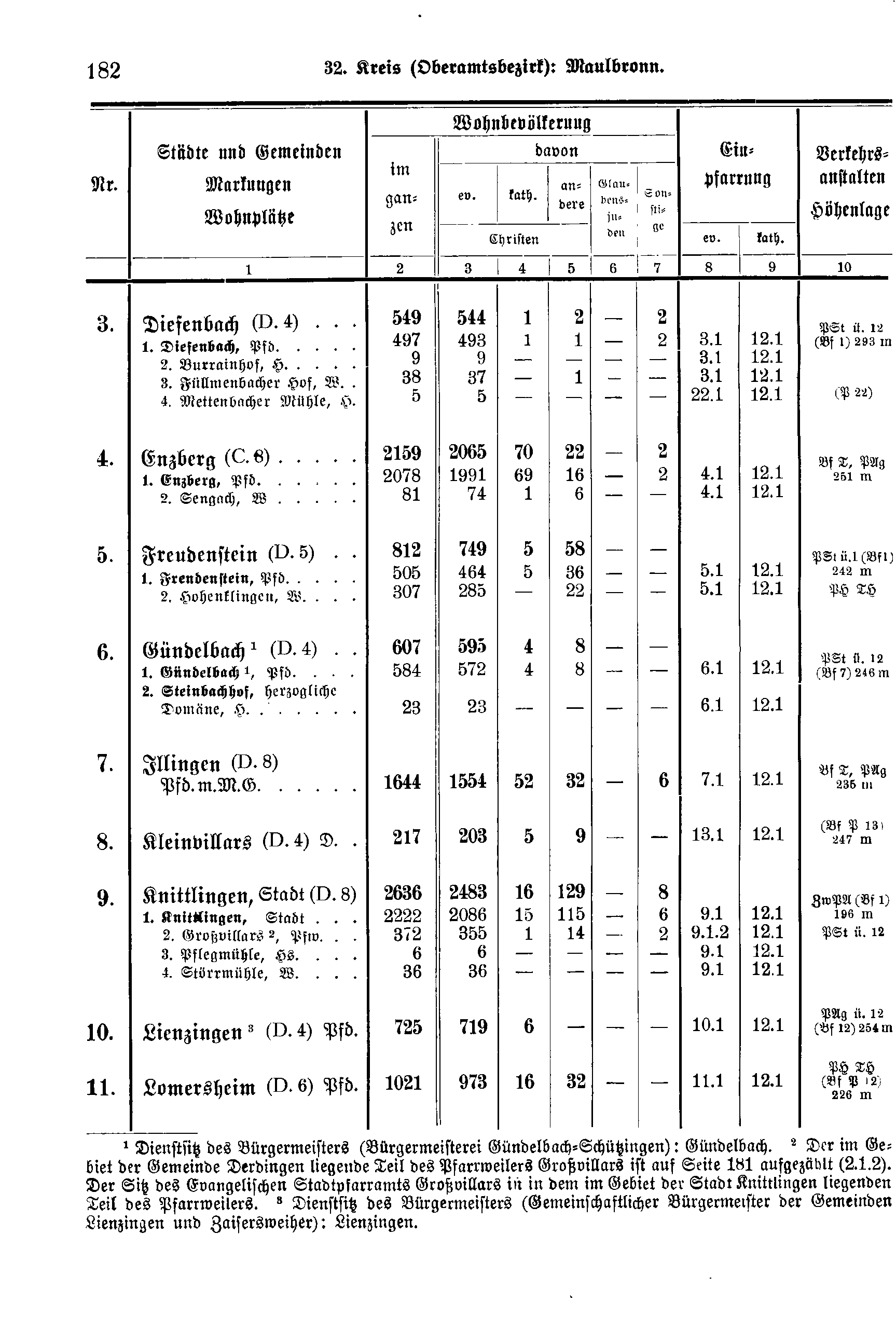 | 1. Knittlingen, Stadt | 2222 | 2086 | 15 | 115 | - | 6 | 9.1 | 12.1 | ZwPA (Bf 1) 196m | |
