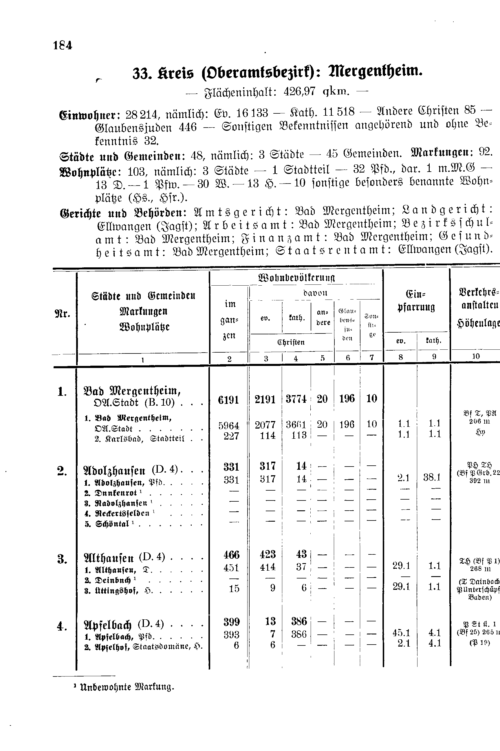 33. Kreis (Oberamtsbezirk): Mergentheim.