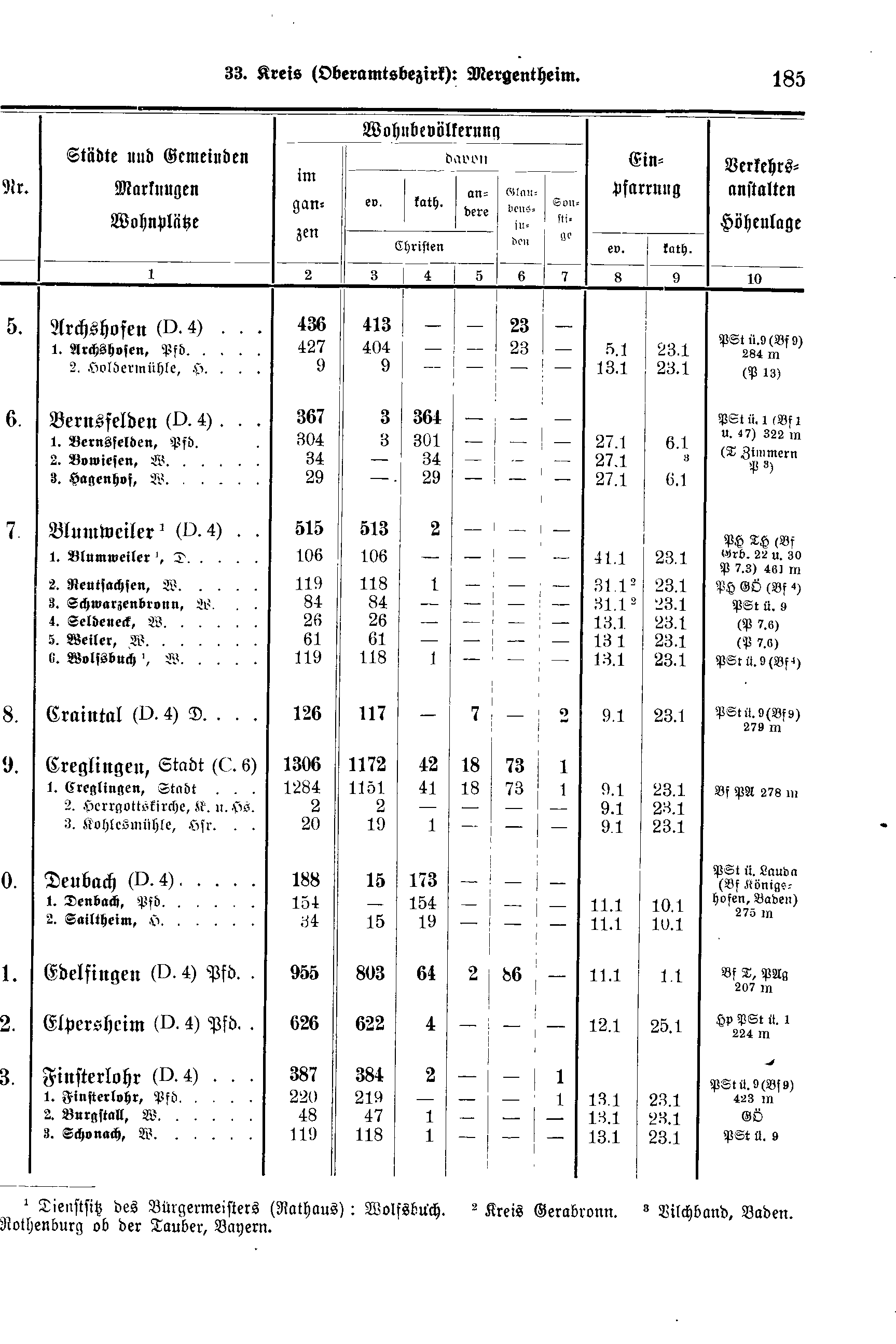 Wohnbevölkerung | Einpfarrung | Verkehrs-anstalten Höhenlage | ||||||