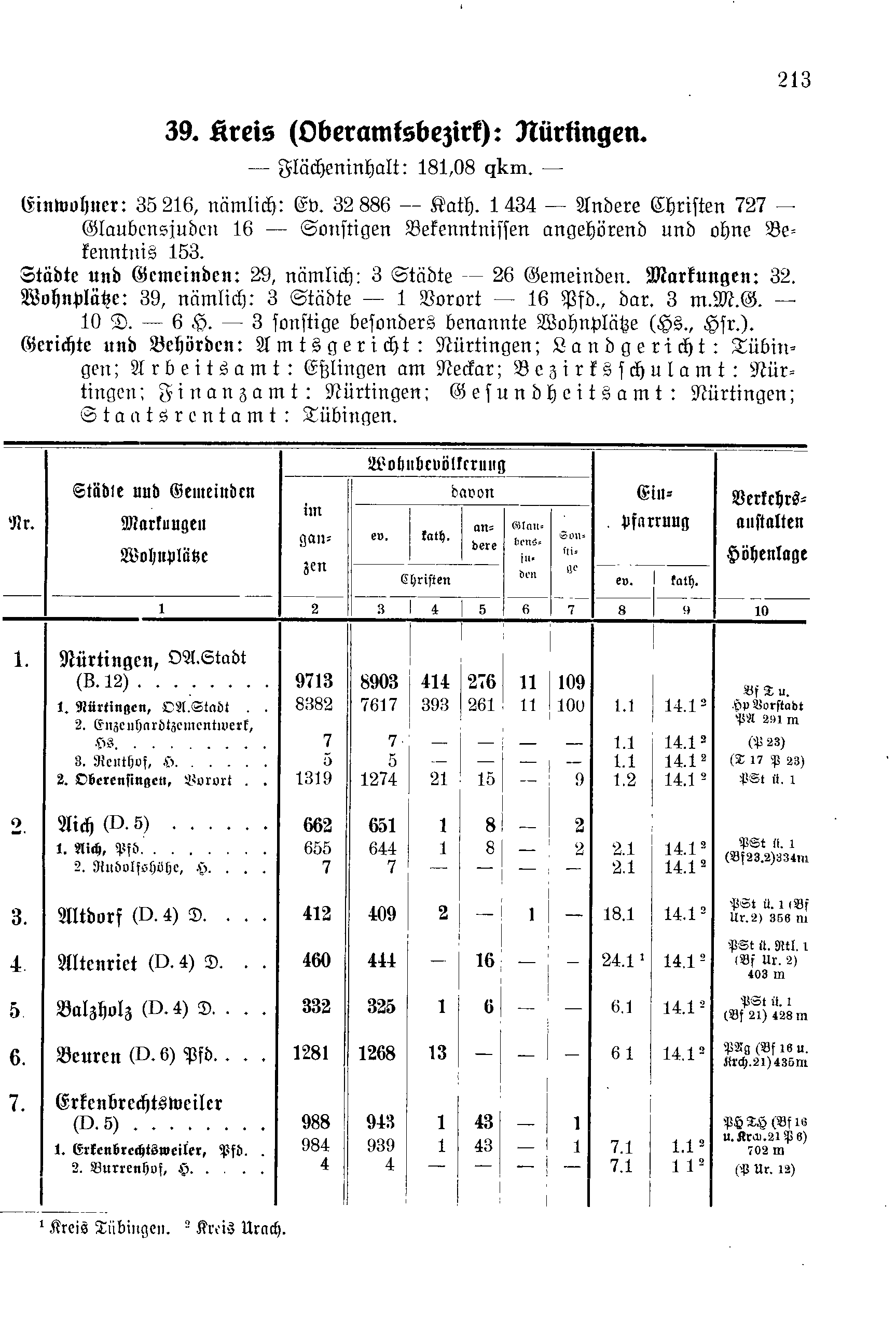 1. Nürtingen, OA.Stadt 8382 7617 393 261 11 100 1.1 14.1[1] Bf T u. Hp Vorstadt PA 291m