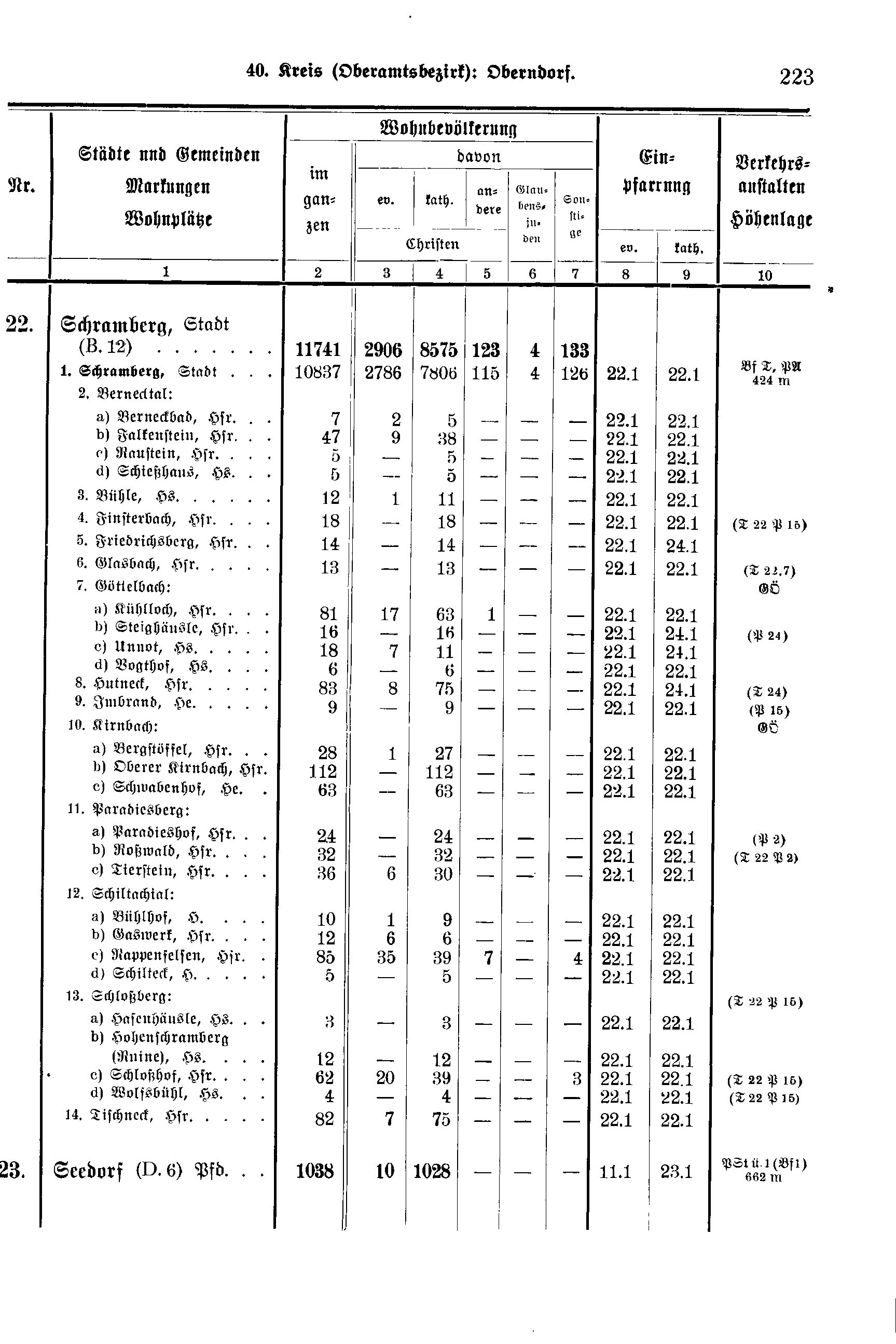 1. Schramberg, Stadt 10837 2786 7806 115 4 126 22.1 22.1 Bf T, PA 424m
