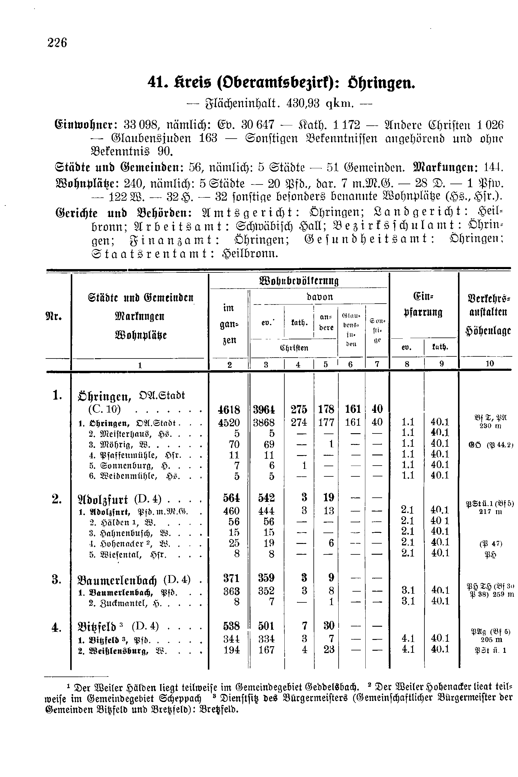 41. Kreis (Oberamtsbezirk): Öhringen.