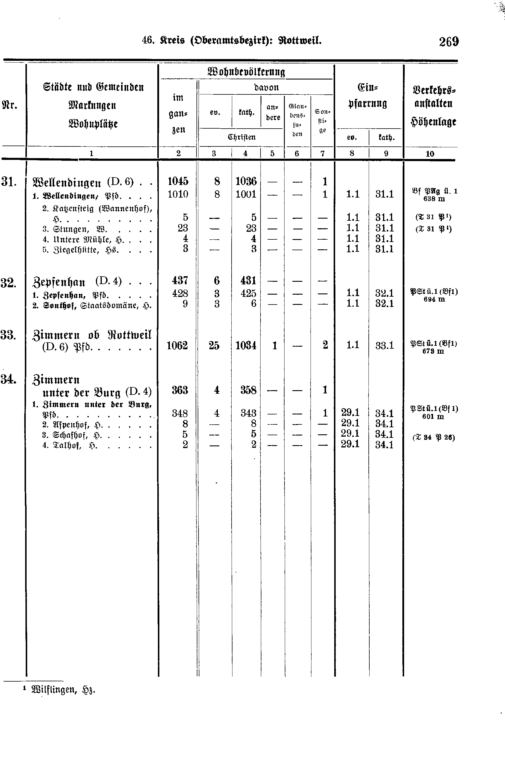 | 33. | Zimmern ob Rottweil (D.6) Pfd. | 1062 | 25 | 1034 | 1 | - | 2 | 1.1 | 33.1 | PSt ü. 1 (Bf 1) 673m |