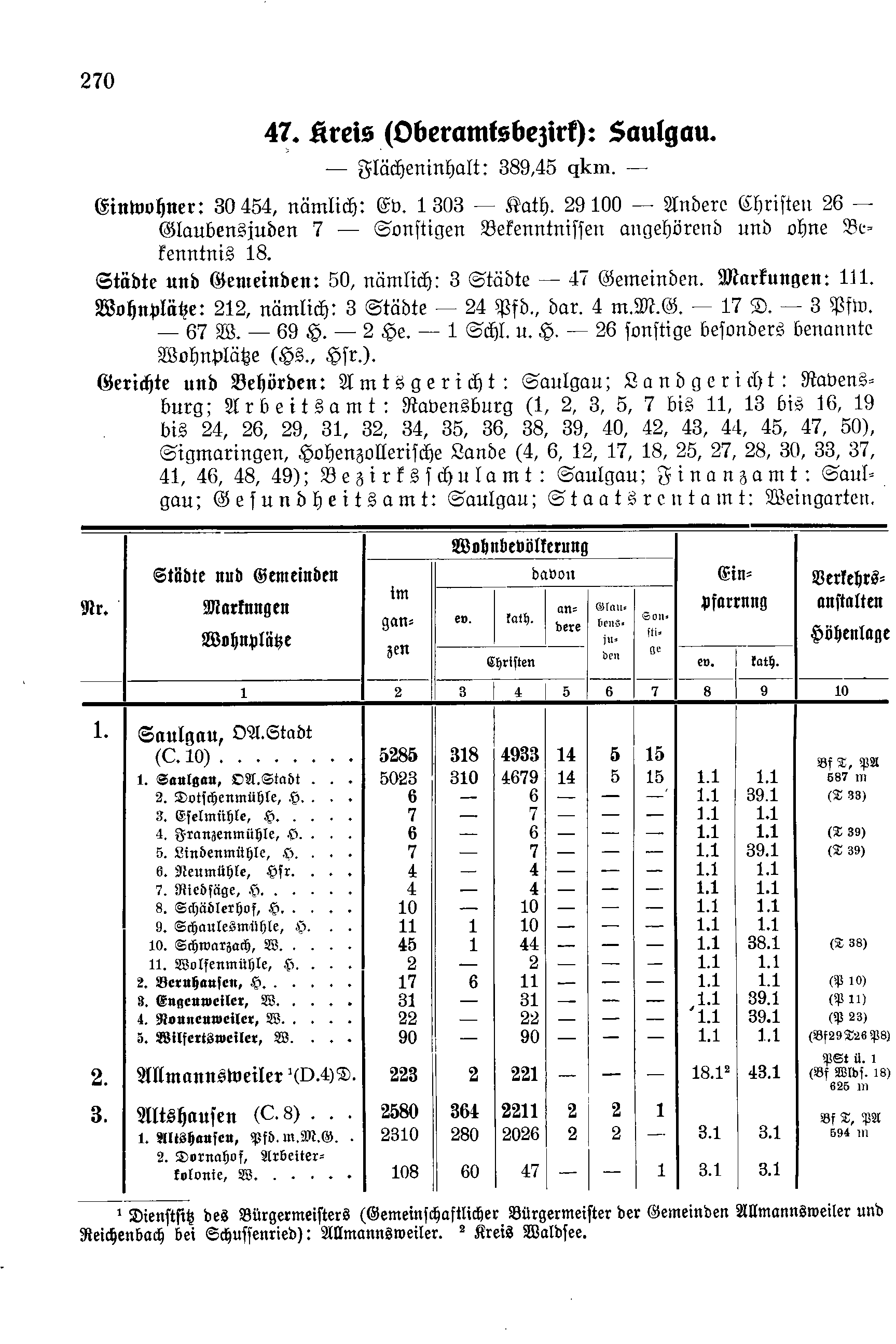 47. Kreis (Oberamtsbezirk): Saulgau.