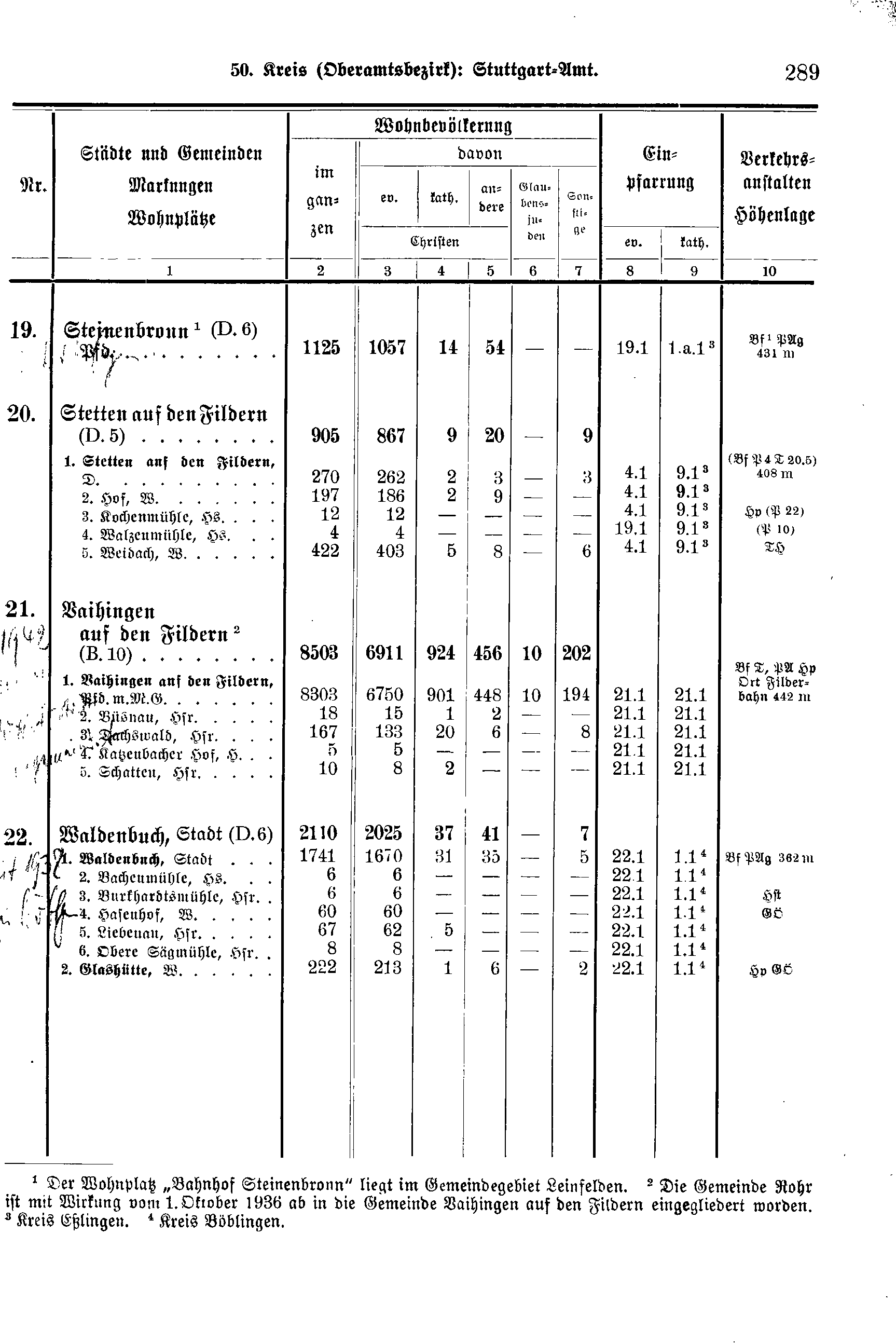 1. Waldenbuch, Stadt 1741 1670 31 35 - 5 22.1 1.1[4] Bf PAg 362m