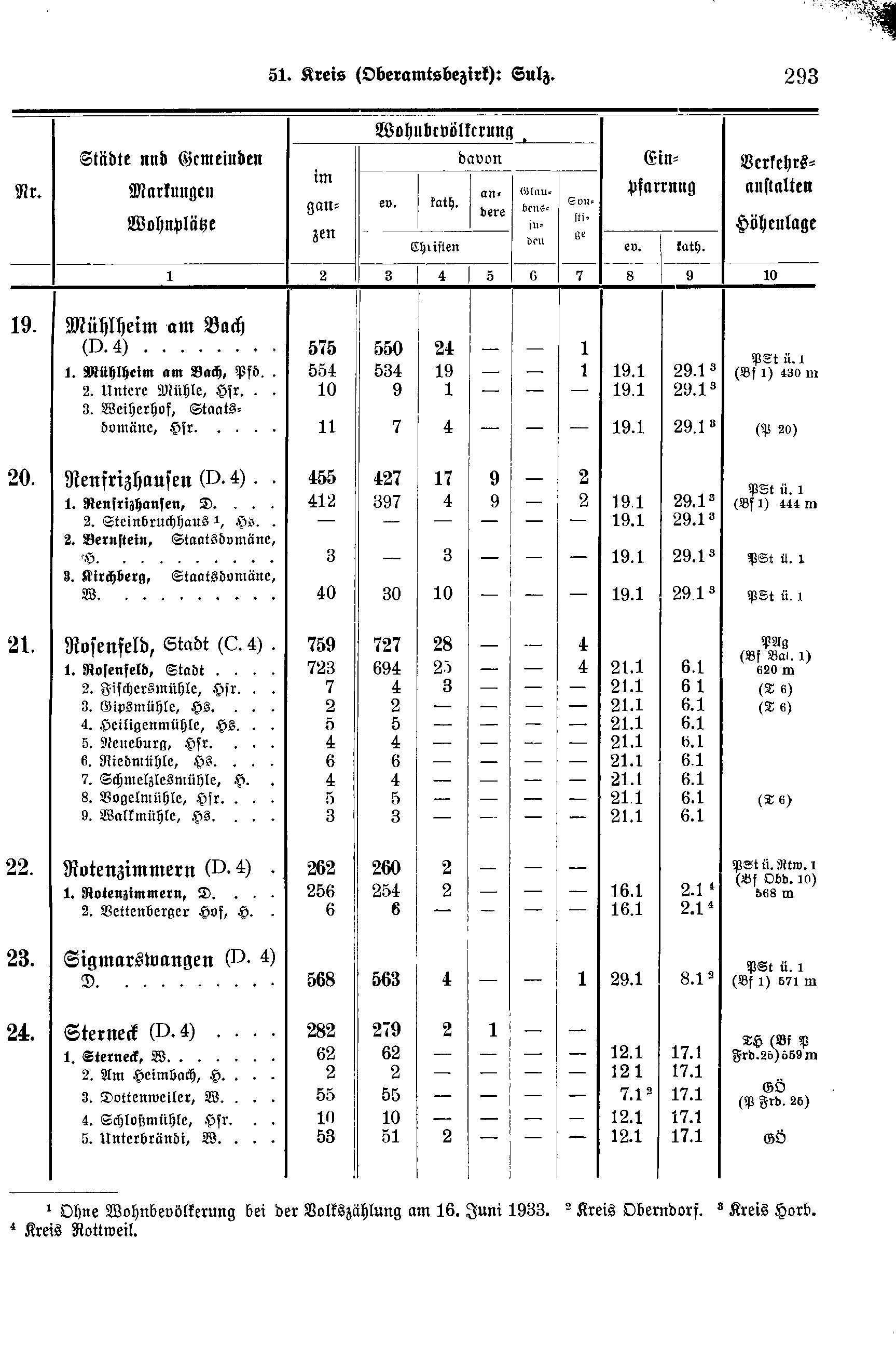 Wohnbevölkerung | Einpfarrung | Verkehrs-anstalten Höhenlage | ||||||