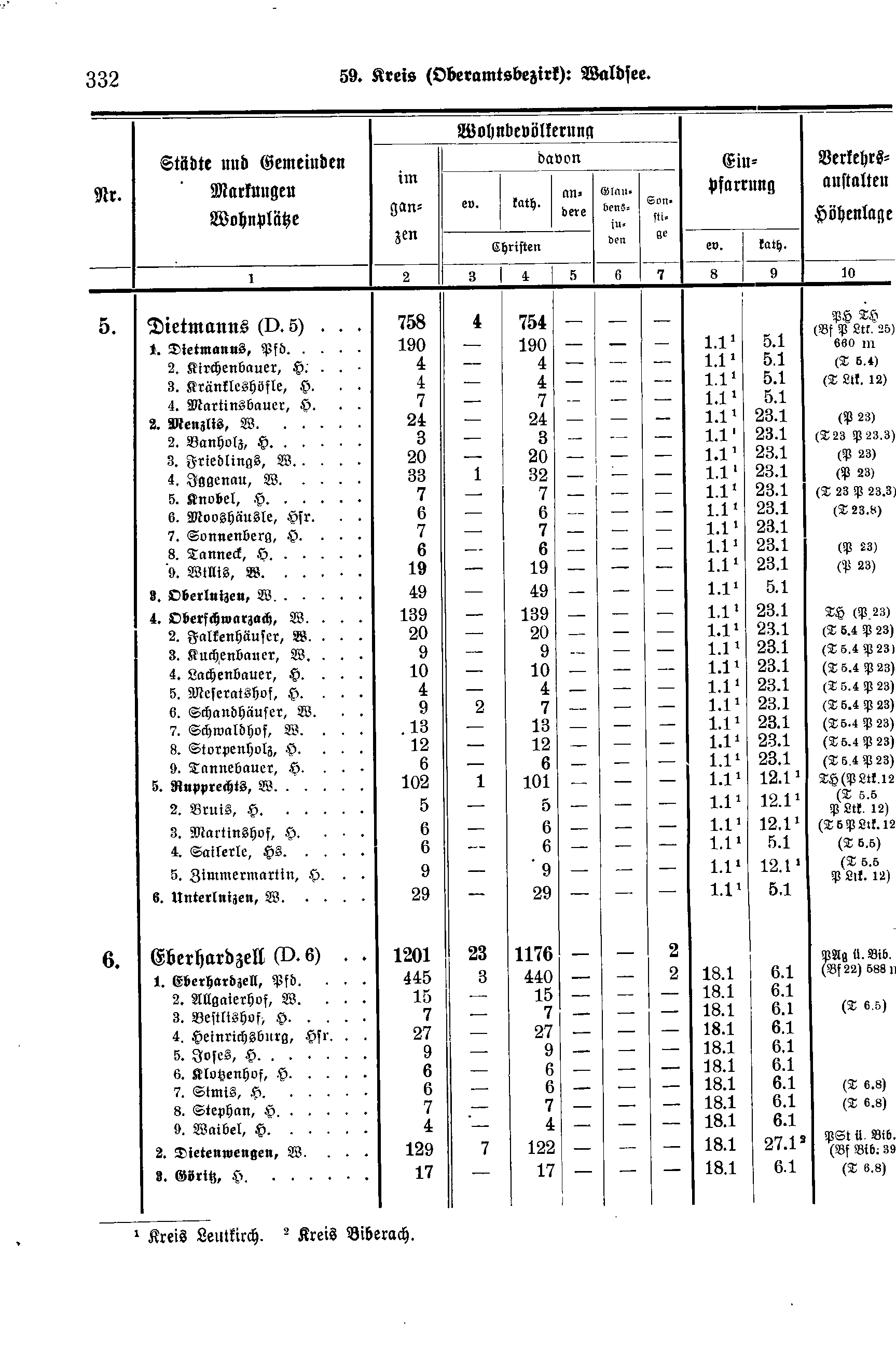 Wohnbevölkerung | Einpfarrung | Verkehrs-anstalten Höhenlage | ||||||