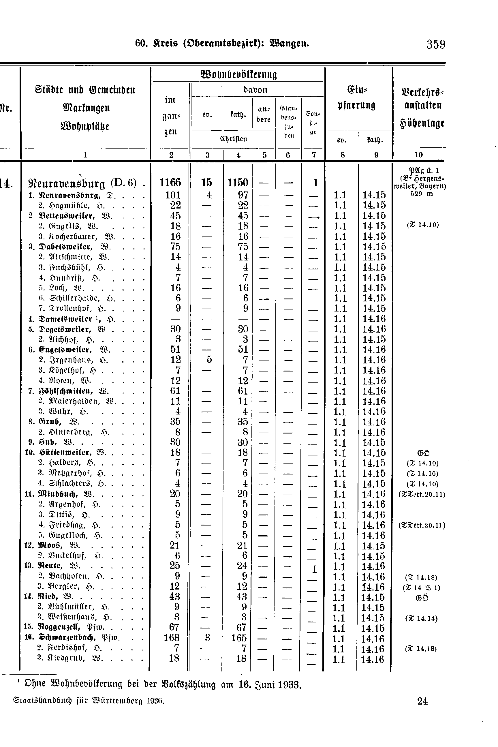Wohnbevölkerung | Einpfarrung | Verkehrs-anstalten Höhenlage | ||||||