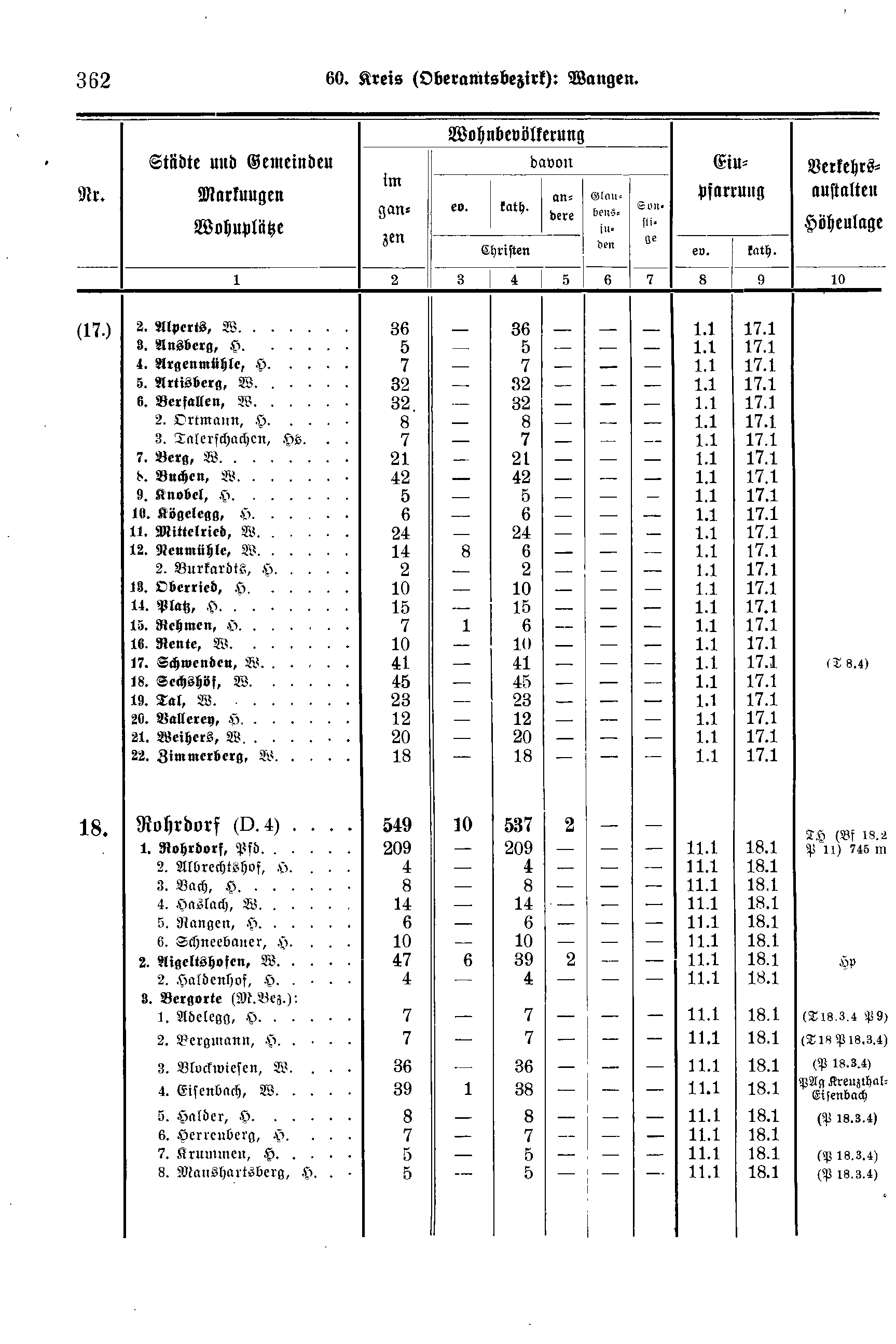 Wohnbevölkerung Einpfarrung Verkehrs-anstalten