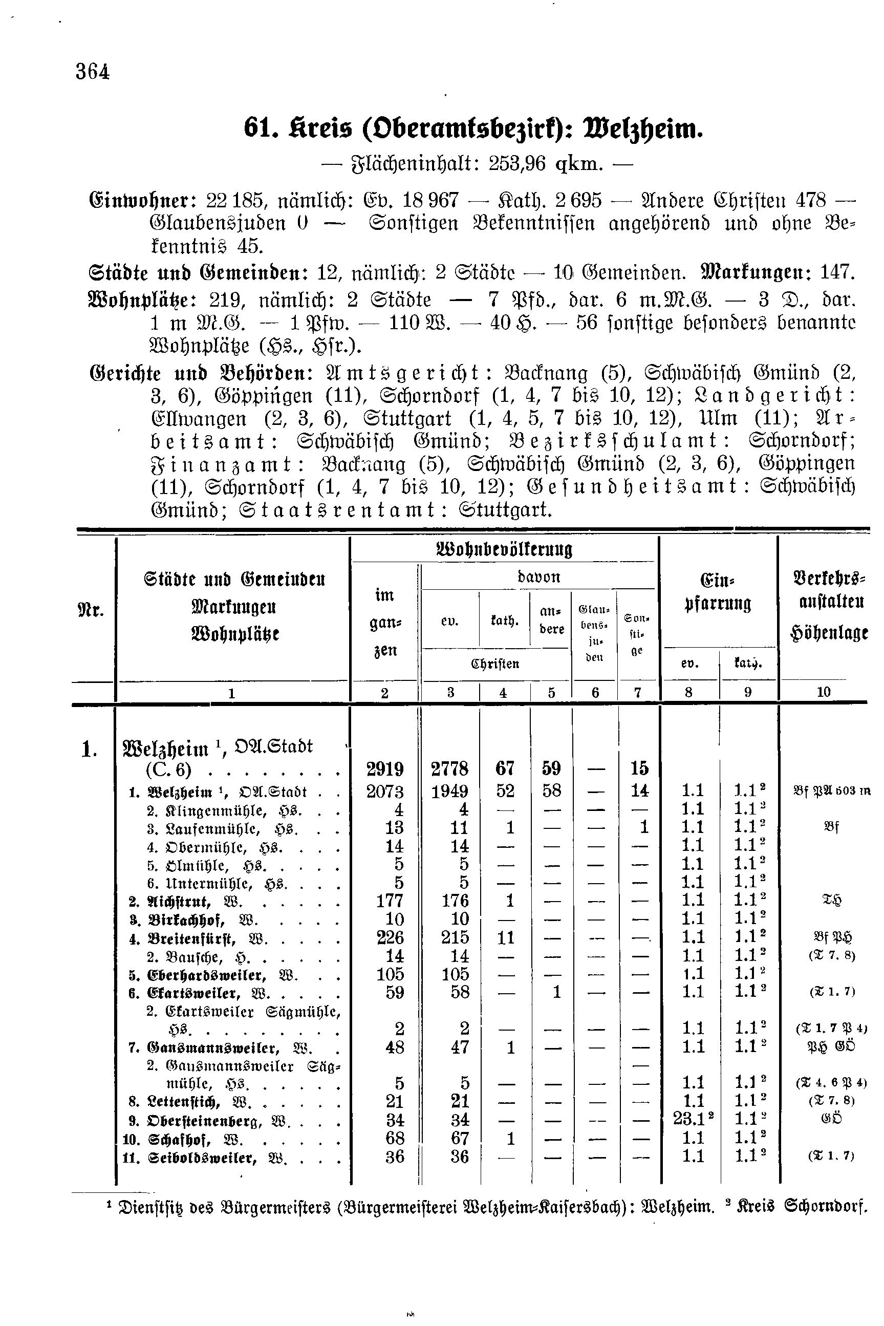 | 1. | Welzheim[1], OA.Stadt (C.6) | 2919 | 2778 | 67 | 59 | - | 15 | |||
