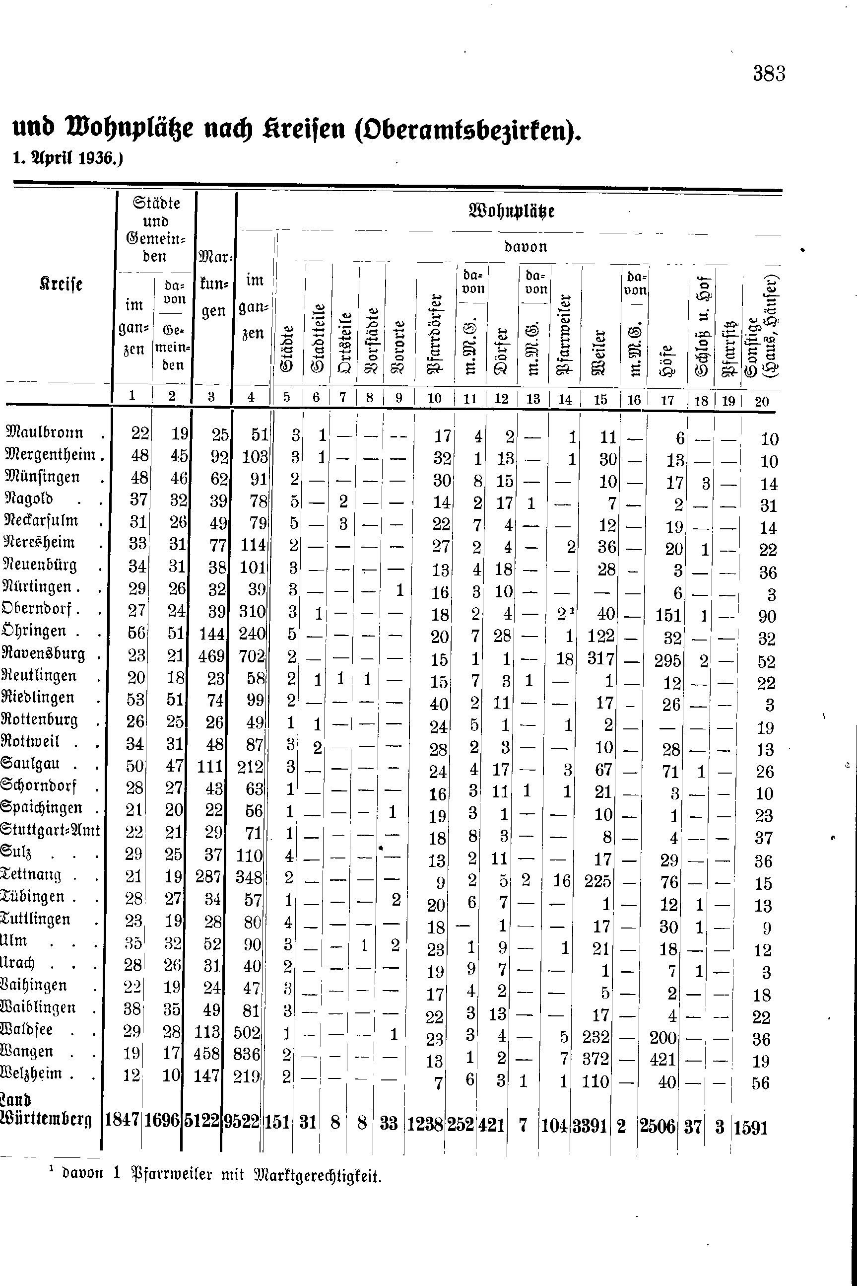 | Land Württemberg | 1847 | 1695 | 5122 | 9522 | 151 | 31 | 8 | 8 | 33 | 1238 | 252 | 421 | 7 | 104 | 3391 | 2 | 2506 | 37 | 3 | 1591 |