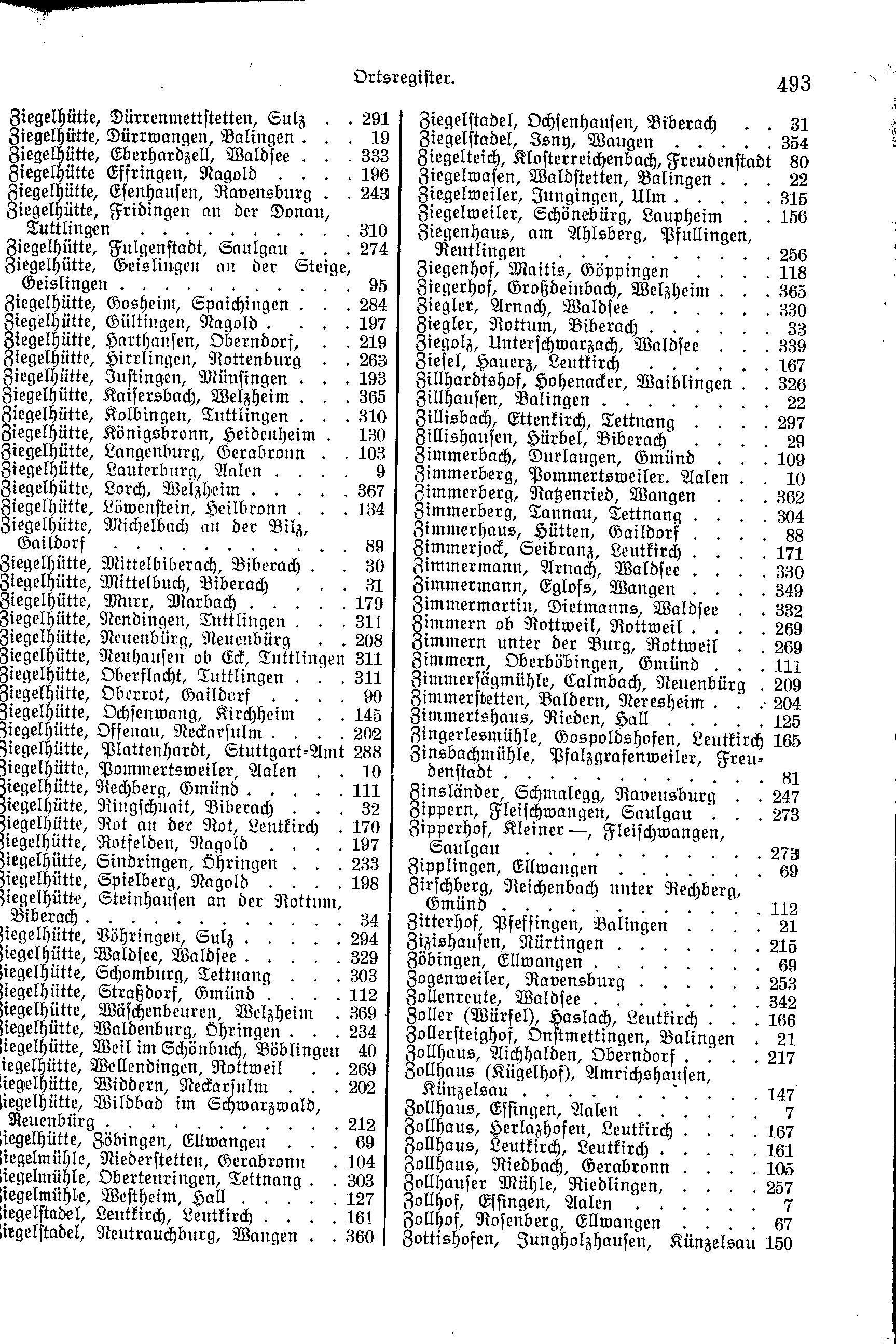 | Ziegelhütte, Gültingen, Nagold | 197 | Ziegler, Rottum, Biberach | 33 |