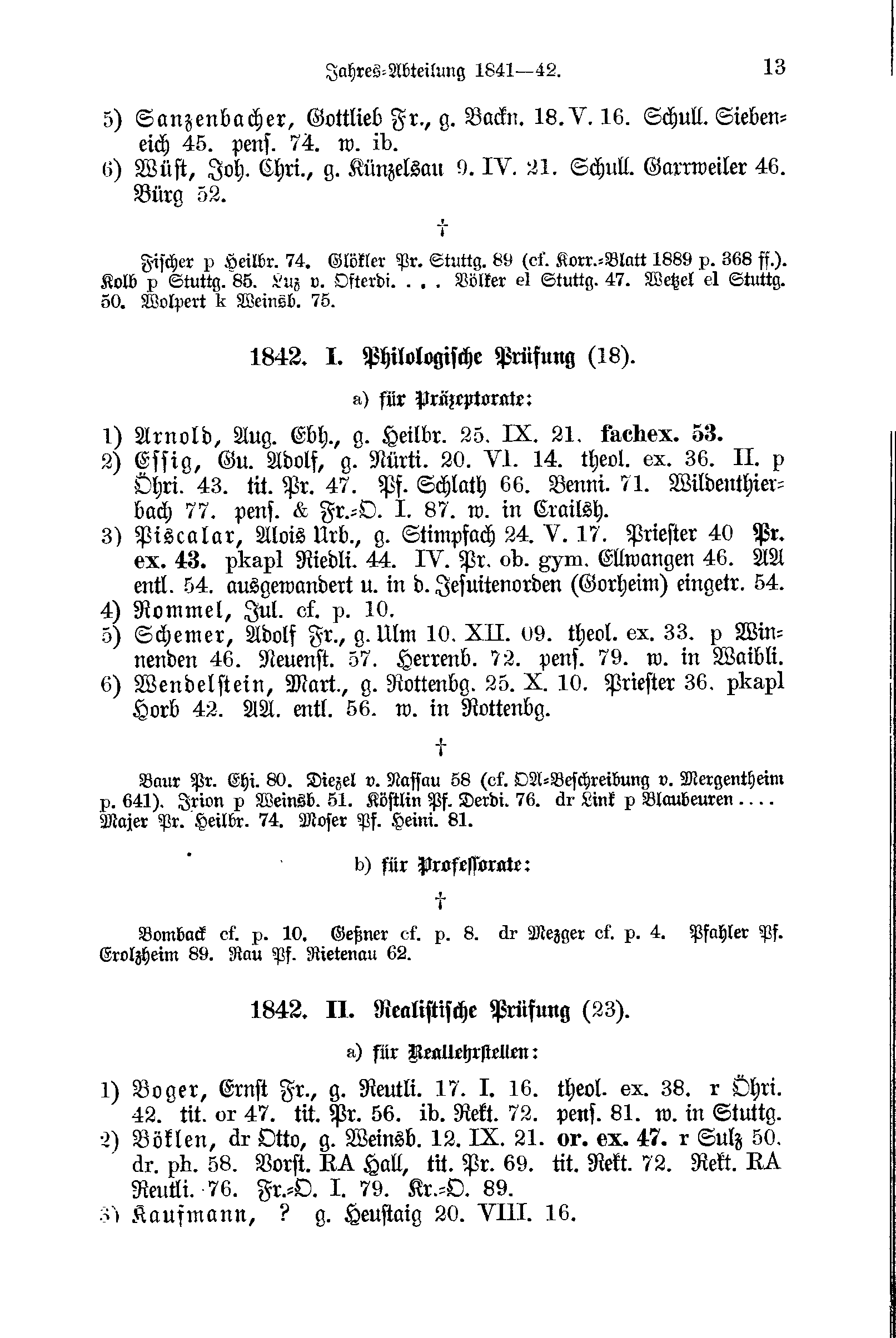 | Fischer p Heilbr. 74. Glökler Pr. Stuttg. 89 (cf. Korr.-Bl. 1889 p. 368 ff.). Kolb p Stuttg. 85. Luz von Ofterdi. ... Völker el Stuttg. 47. Wetzel el Stuttg. 50. Wolpert k Weinsb. 75. | |
