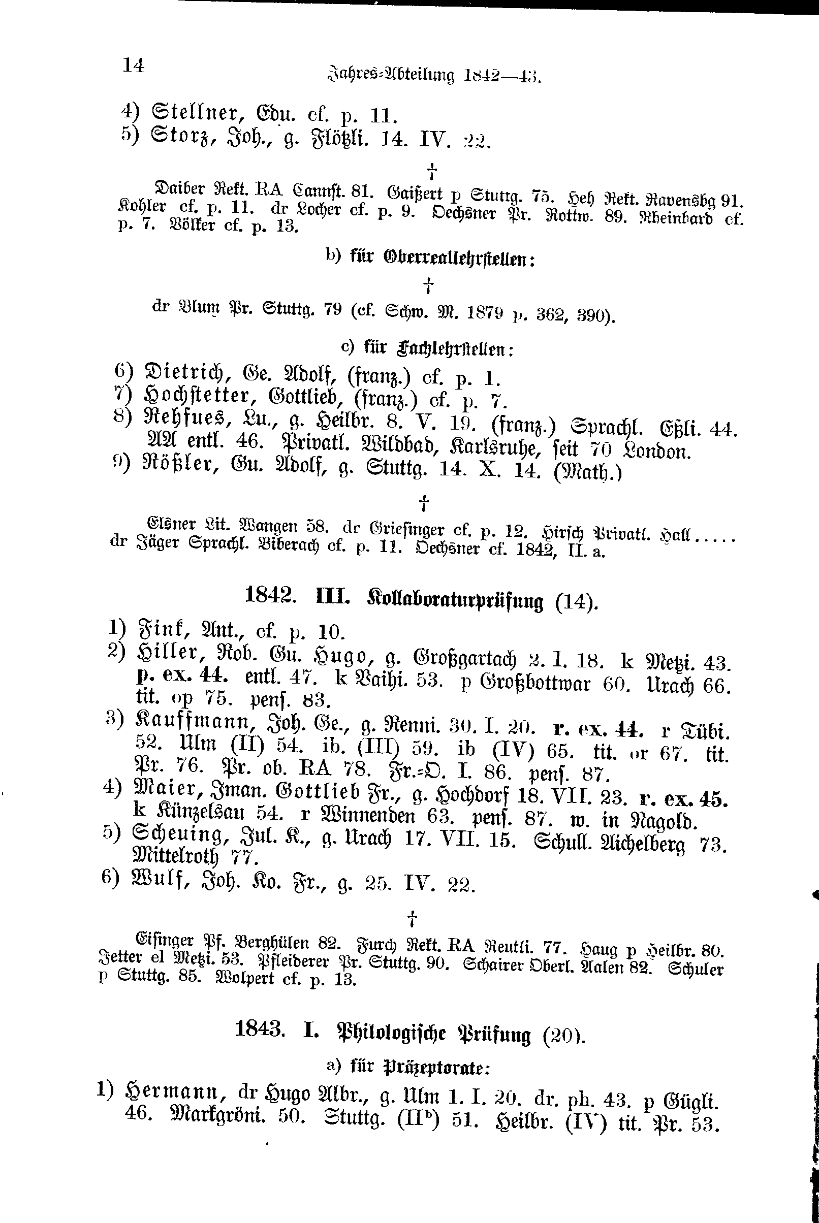 | Elsner Lit. Wangen 58. dr Griesinger cf. p. 12. Hirsch Privatl. Hall. .... dr Jäger Sprachl. Biberach cf. p. 11. Oechsner cf. 1842 II. a. | |