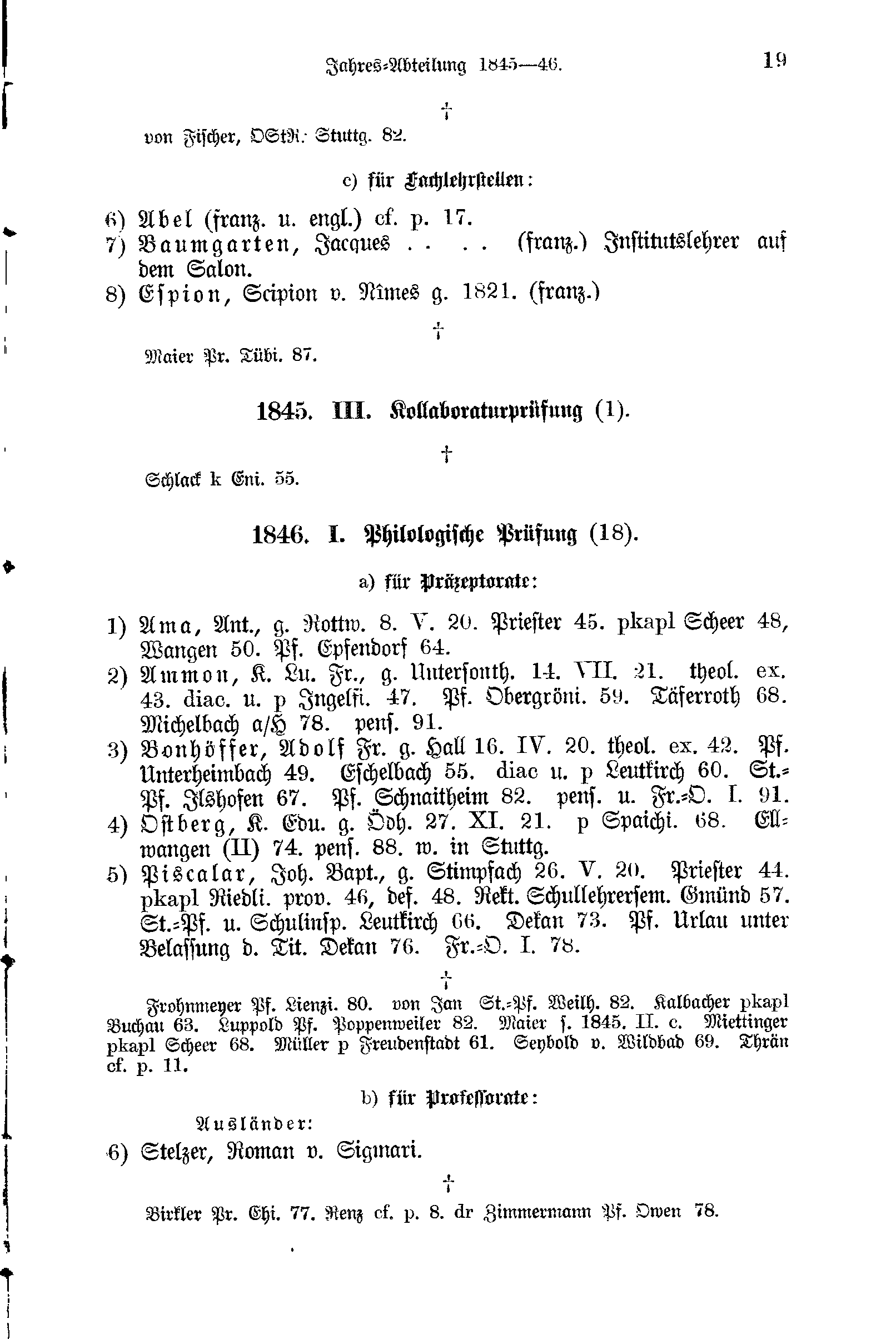 | Frohnmeyer Pf. Lienzi. 80. von Jan St.-Pf. Weilh. 82. Kalbacher pkapl Buchau 63. Luppold Pf. Poppenweiler 82. Maier s. 1845. II. c. Miettinger pkapl Scheer 68. Müller p Freudenstadt 61. Seybold v. Wildbad 68. Thrän cf. p. 11. | |