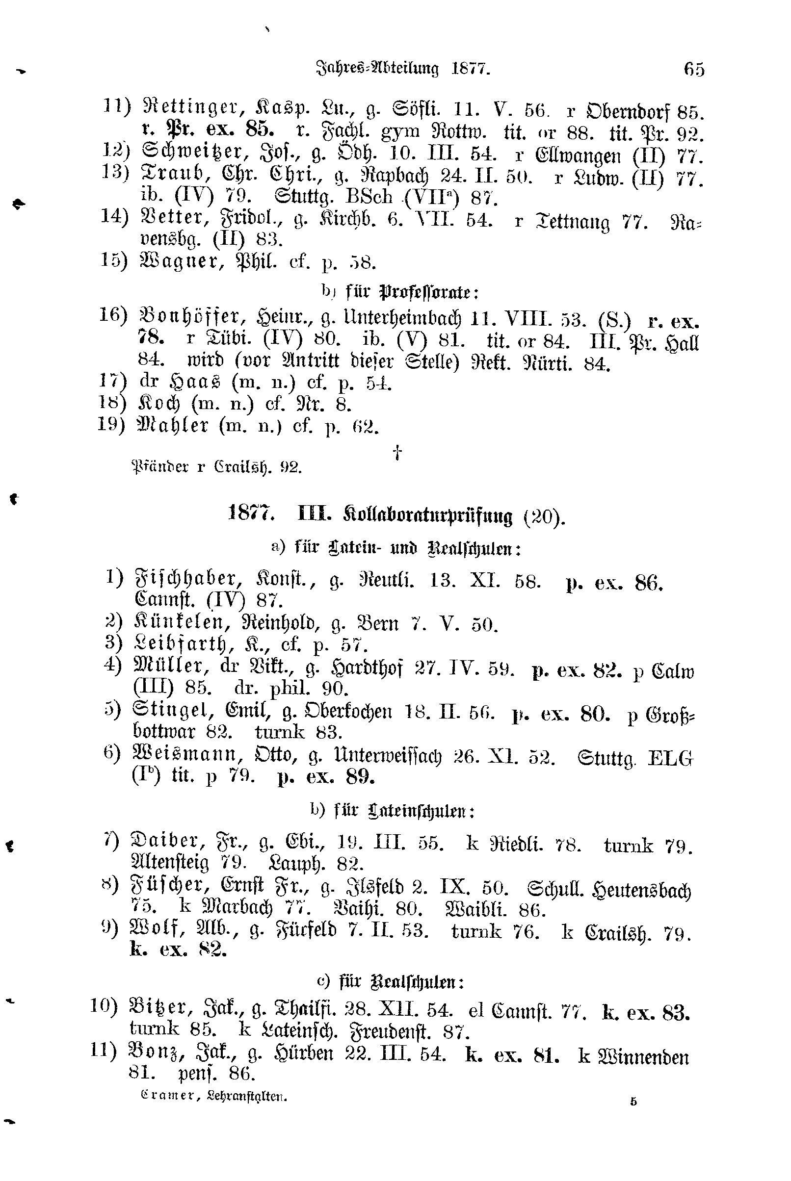 | 10) | Bitzer, Jak., g. Thailfi. 28. XII. 54. el Cannst. 77. k. ex. 83. turnk 85. k Lateinsch. Freudenst. 87. |