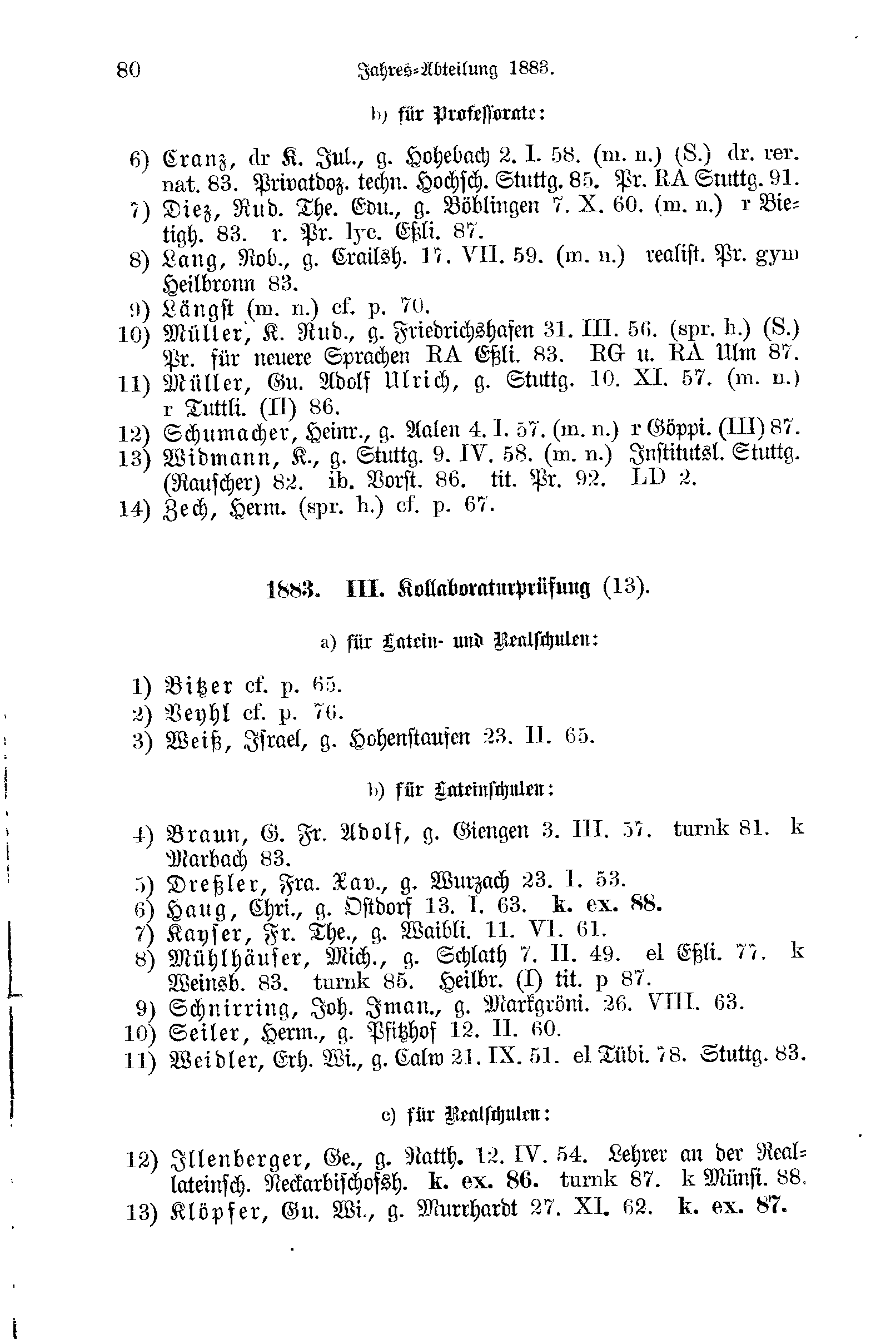 | 10) | Müller, K. Rud., g. Friedrichshafen 31. III 56. (spr. h.) (S.) Pr. für neuere Sprachen RA Eßli. 83. RG u. RA Ulm 87. |