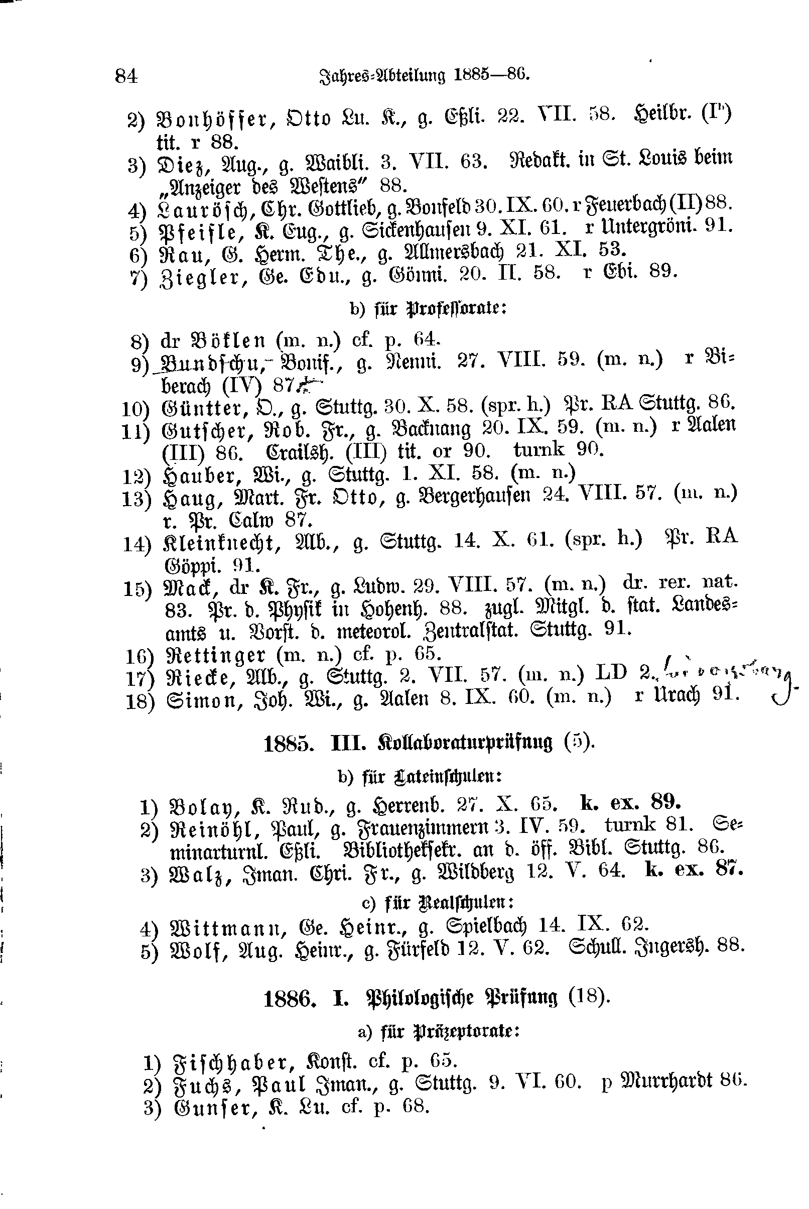 | 2) | Reinöhl, Paul, g. Frauenzimmern 3. IV. 59. turnk 81. Seminarturnl. Eßli. Bibliotheksekr. an d. öff. Bibl. Stuttg. 86. |