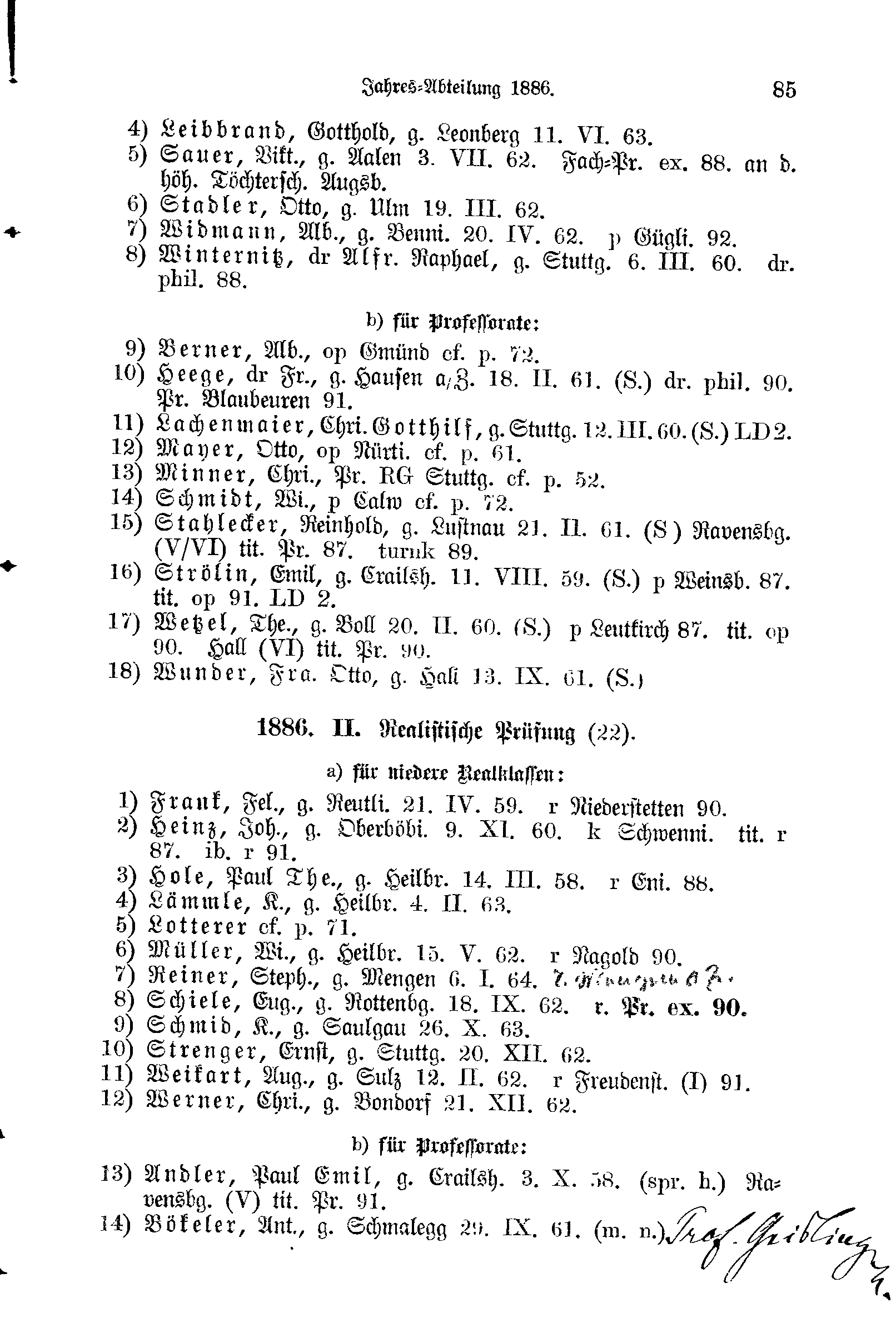 | 13) | Andler, Paul Emil, g. Crailsh. 3. X. 58. (spr. h.) Ravensbg. (V) tit. Pr. 91. |