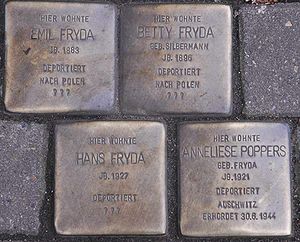 • hier wohnte Anneliese Poppers geb. Fryda, Jg. 1921, deportiert, Auschwitz, ermordet 30.6.1944