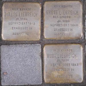 • hier wohnte Julius Liebreich, Jg. 1884, deportiert 1943, ermordet in Auschwitz