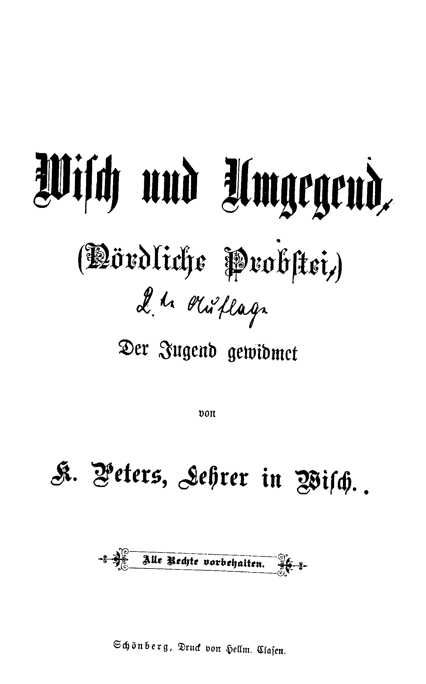 K. Peters: Wisch und Umgegend (Nördliche Probstei), Schönberg 1898. (48 Seiten)