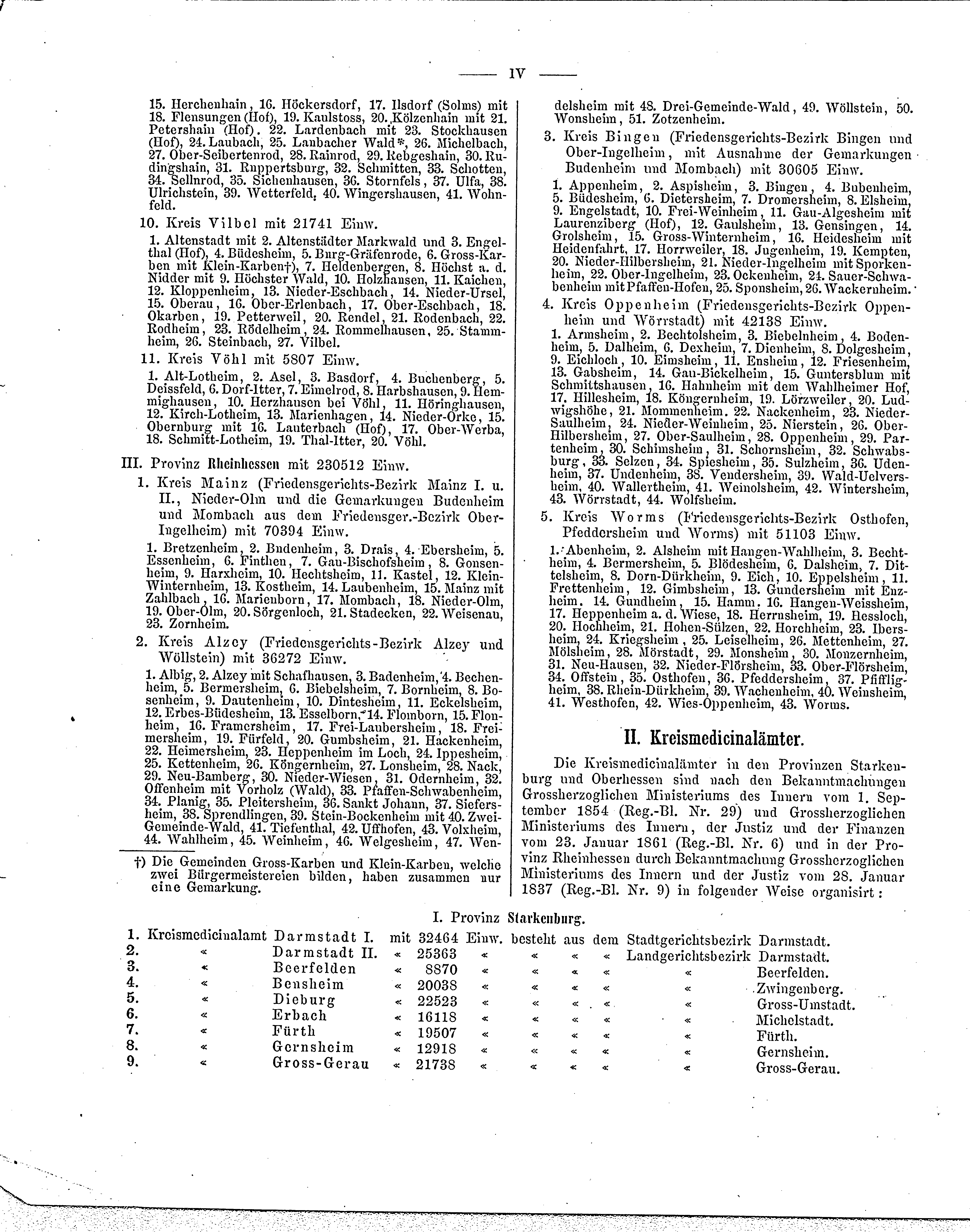 | 9. | Kreismedicinalamt Gross-Gerau | mit | 21738 Einw. | besteht aus dem Landgerichtsbezirk Gross-Gerau. |