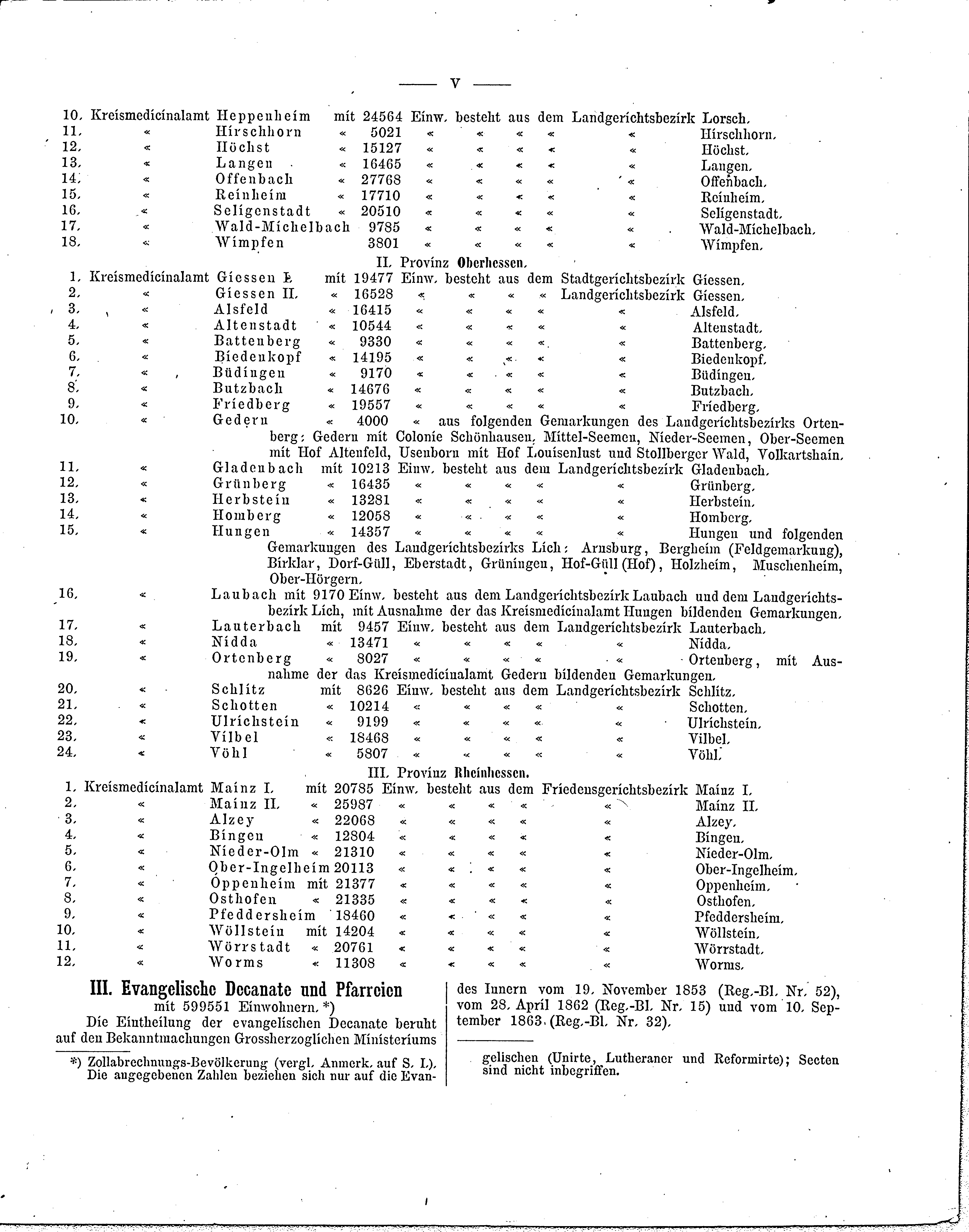 | 10. | Kreismedicinalamt Heppenheim | mit | 24564 Einw. | besteht aus dem Landgerichtsbezirk Lorsch. | |