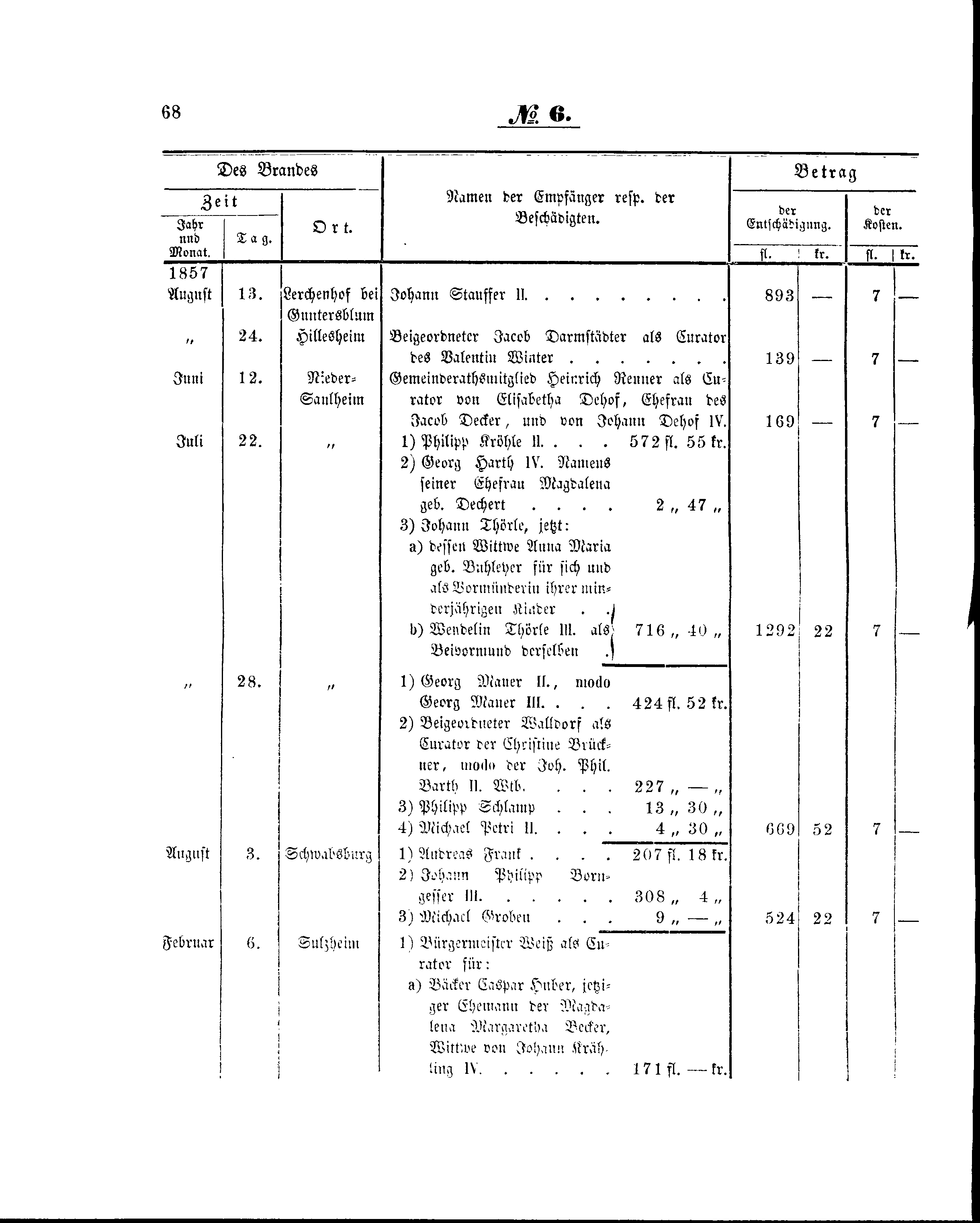 | Februar | 6. | Sulzheim | 1) | Bürgermeister Weiß als Curator für: | |||||||||