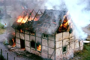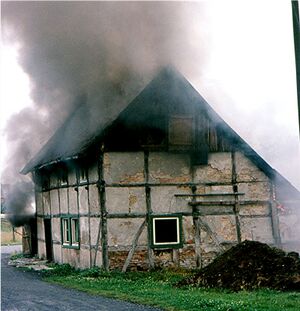1179 : Haus abgebrannt und neu errichtet. Torbogen-Inschrift: Brannt und Feuer hat Mich geworffen