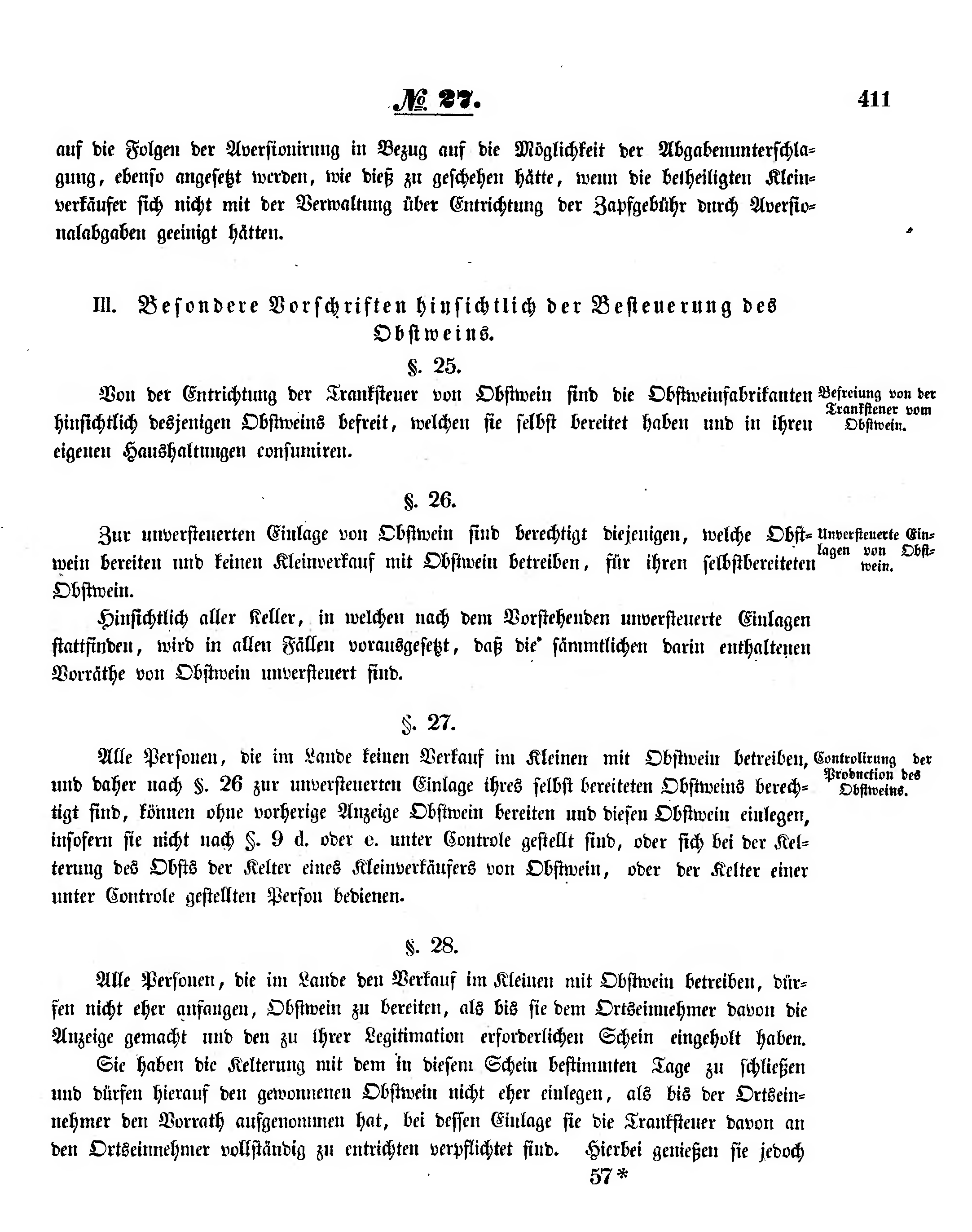 <center>III. Besondere Vorschriften hinsichtlich der Besteuerung des Obstweins.<br />§. 25.</center> | |||