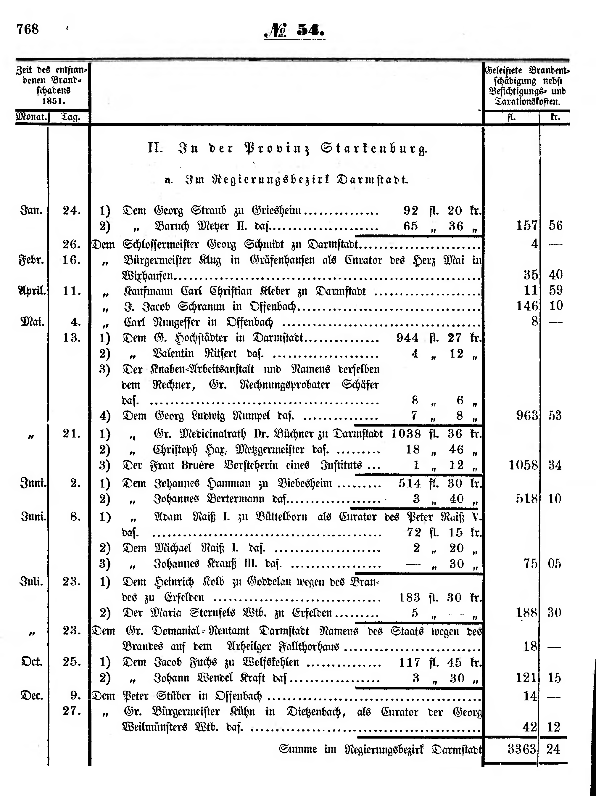 |"||23.||colspan=5 |Dem Gr. Domanial-Rentamt Darmstadt Namens des Staats wegen des Brandes auf dem Arheilger Fallthorhaus||18|| - | |||