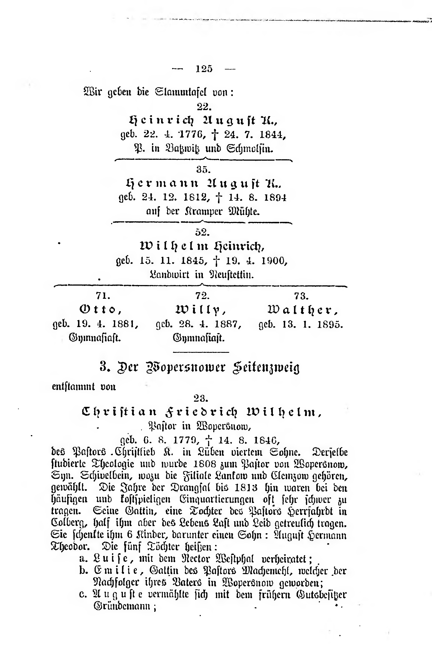 | 22. Heinrich August K. geb. 22.4.1776, + 24.7.1844, P. in Batzwitz und Schmolsin | ||||||||||||||||
