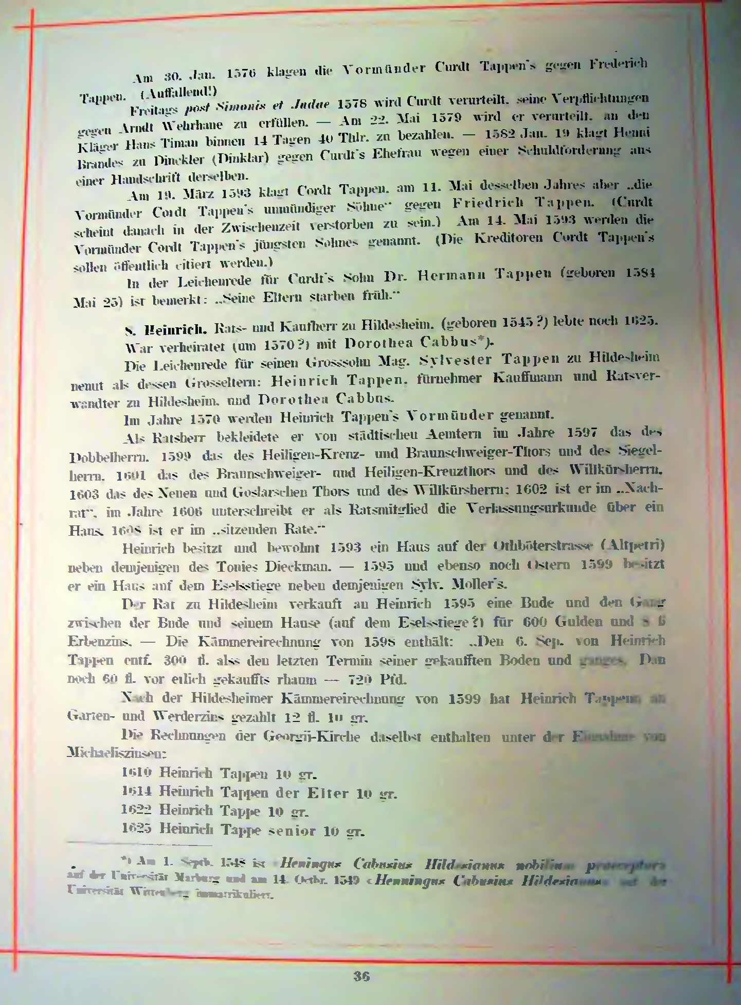 Nach der Hildesheimer Kämmereirechnung von 1599 hat Heinrich Tappenn an Garten- und Werderzins gezahlt 12 fl. 10 gr.