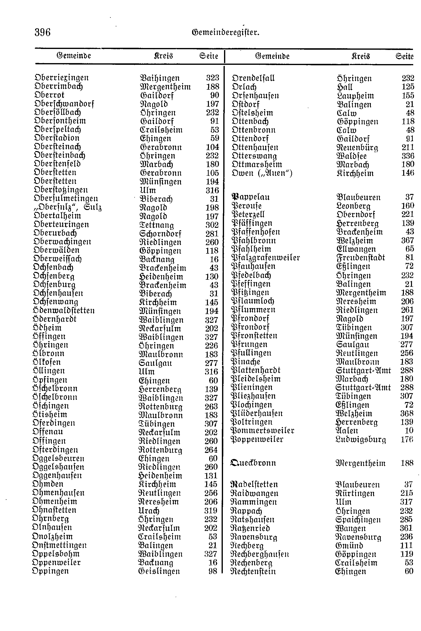 | Ohnastetten | Urach | 319 | Rappach | Öhringen | 232 |