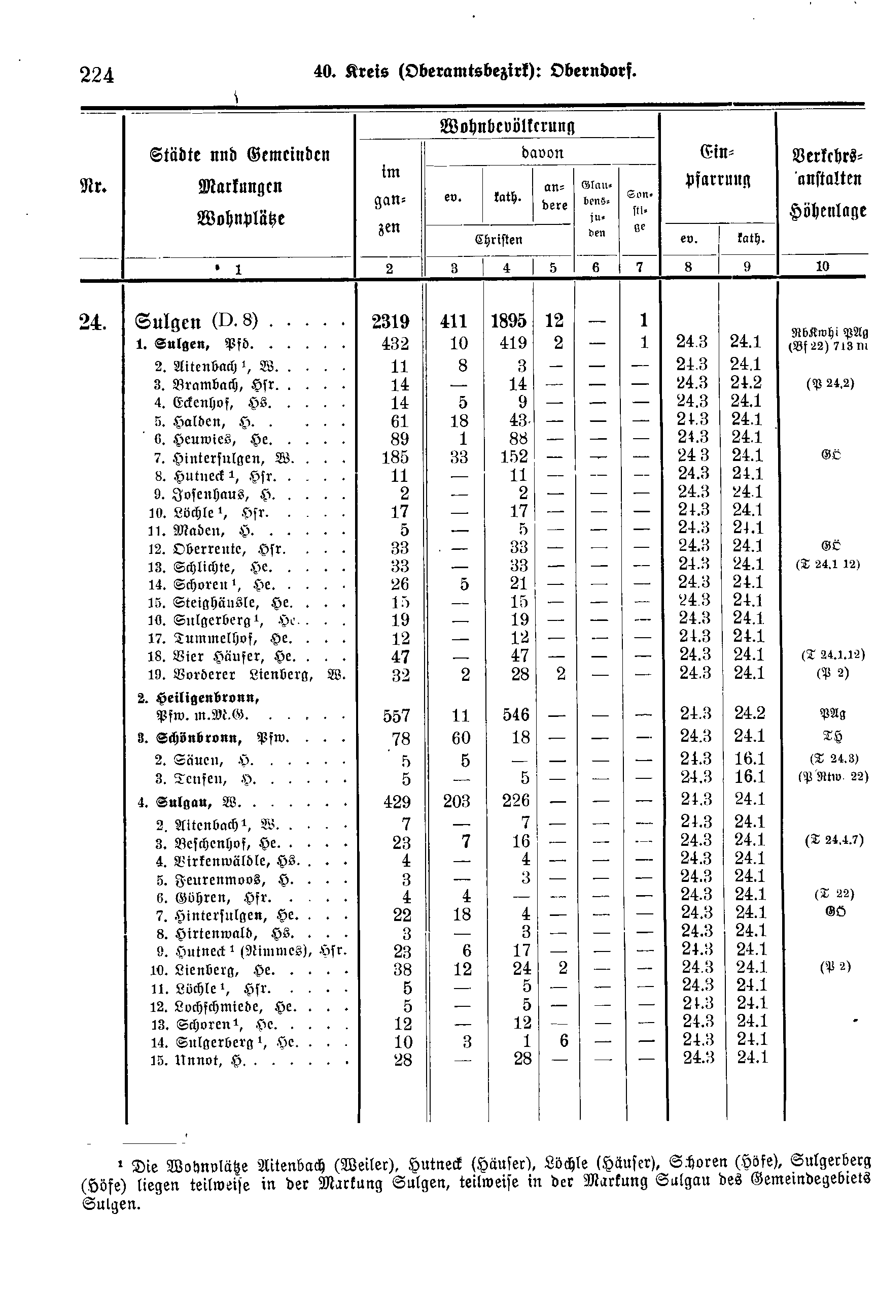 1. 1,0 1,1 1,2 1,3 1,4 1,5 1,6 1,7 1,8 1,9 Die Wohnplätze Aitenbach(Weiler), Hutneck, (Häuser), Schoren (Höfe), Sulgerberg (Höfe) liegen teilweise in der Markung Sulgen, teilweise in der Markung Sulgau des Gemeindegebiets Sulgen.