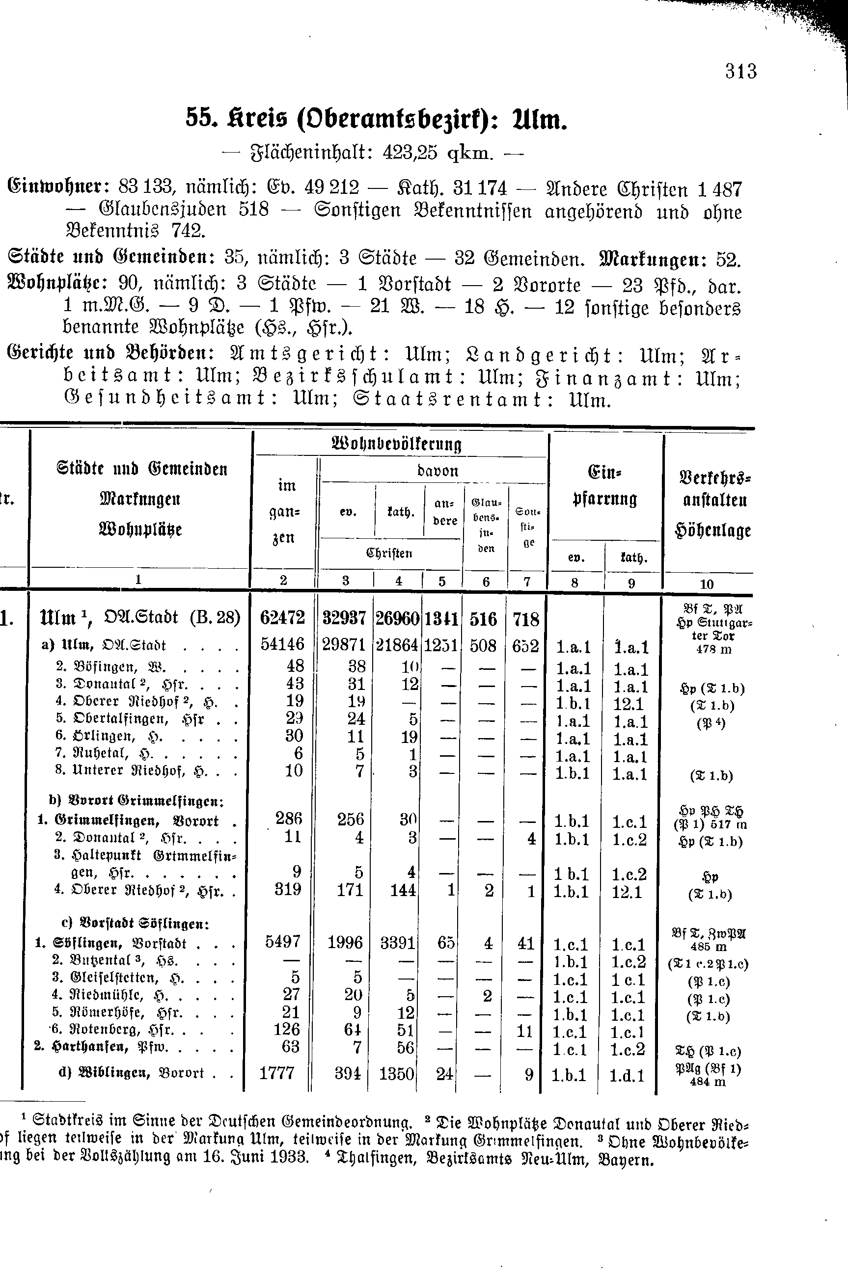 == 55. Kreis (Oberamtsbezirk): Ulm. == | == 55. Kreis (Oberamtsbezirk): Ulm. == | ||
