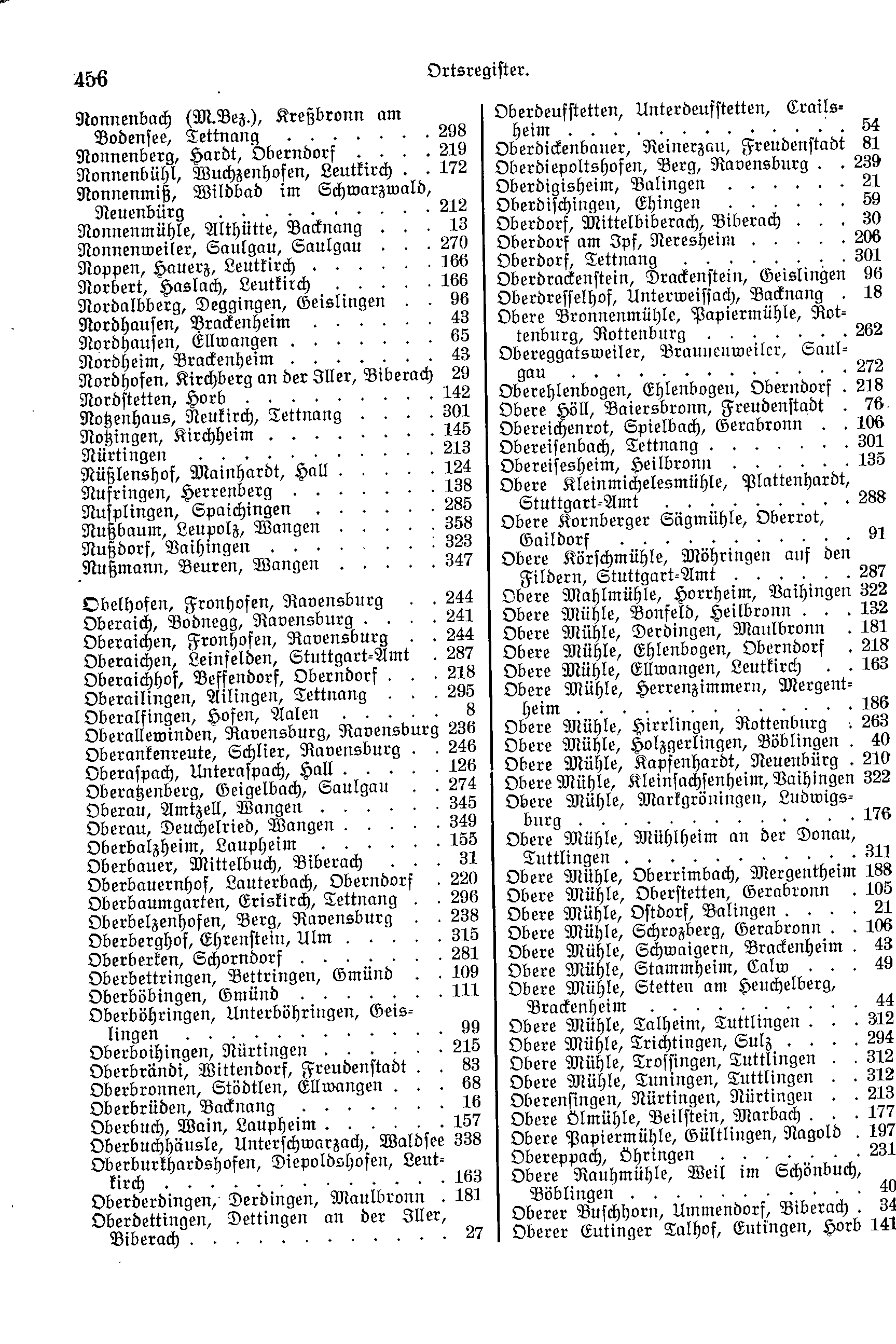 | Nonnenbach (M.Bez.), Kreßbronn am Bodensee, Tettnang | 298 | Oberdeufstetten, Unterdeufstetten, Crailsheim | 54 |