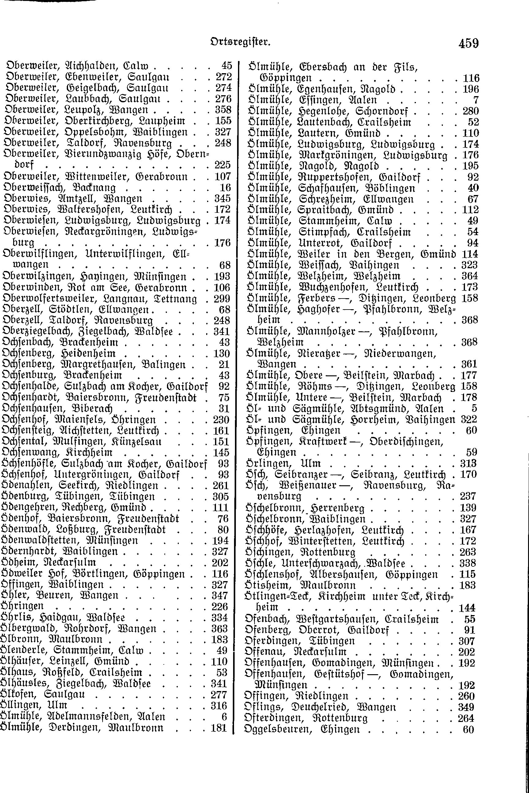 | Oberweiler, Geigelbach, Saulgau | 274 | Ölmühle, Eggenhausen, Nagold | 196 |