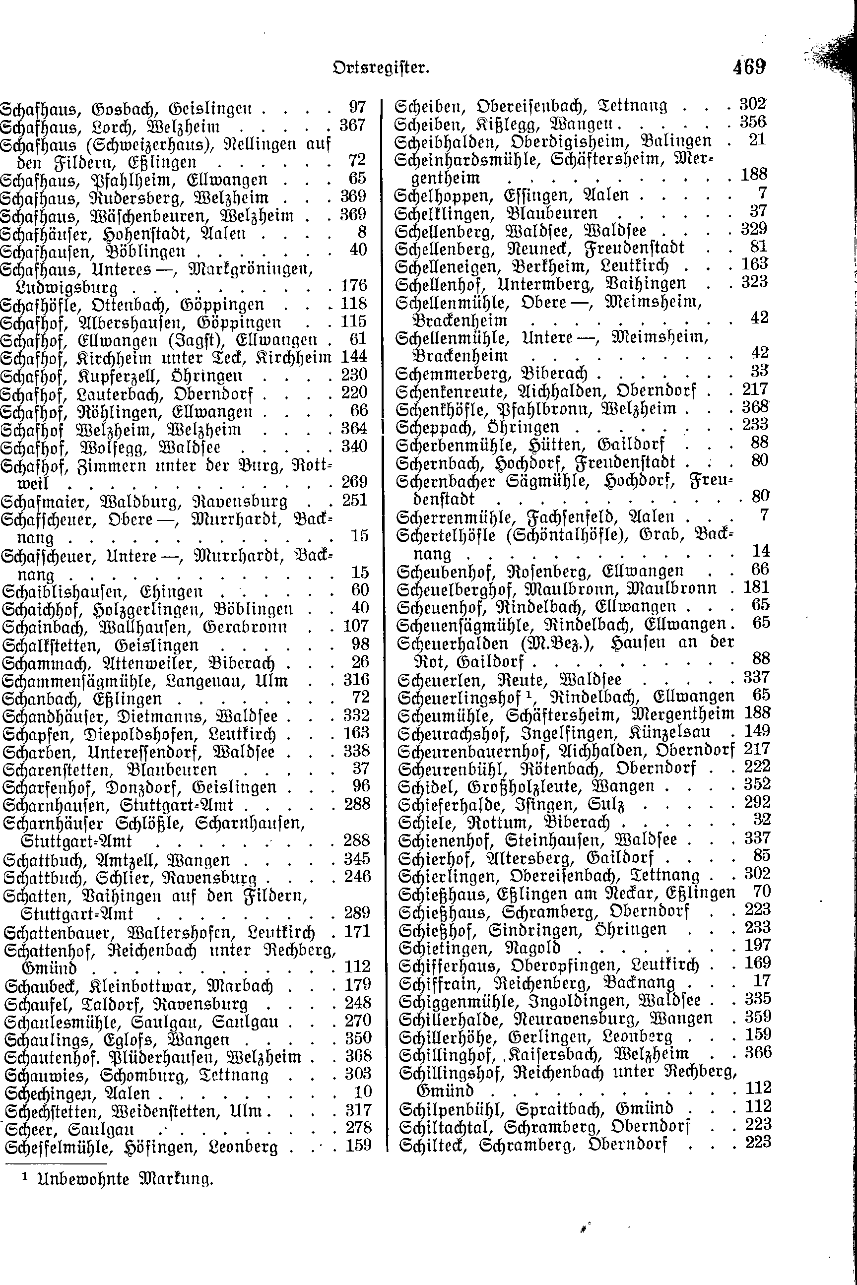 | Scharfenhof, Donzdorf, Geislingen | 96 | Schidel, Großhlzleute, Wangen | 352 |