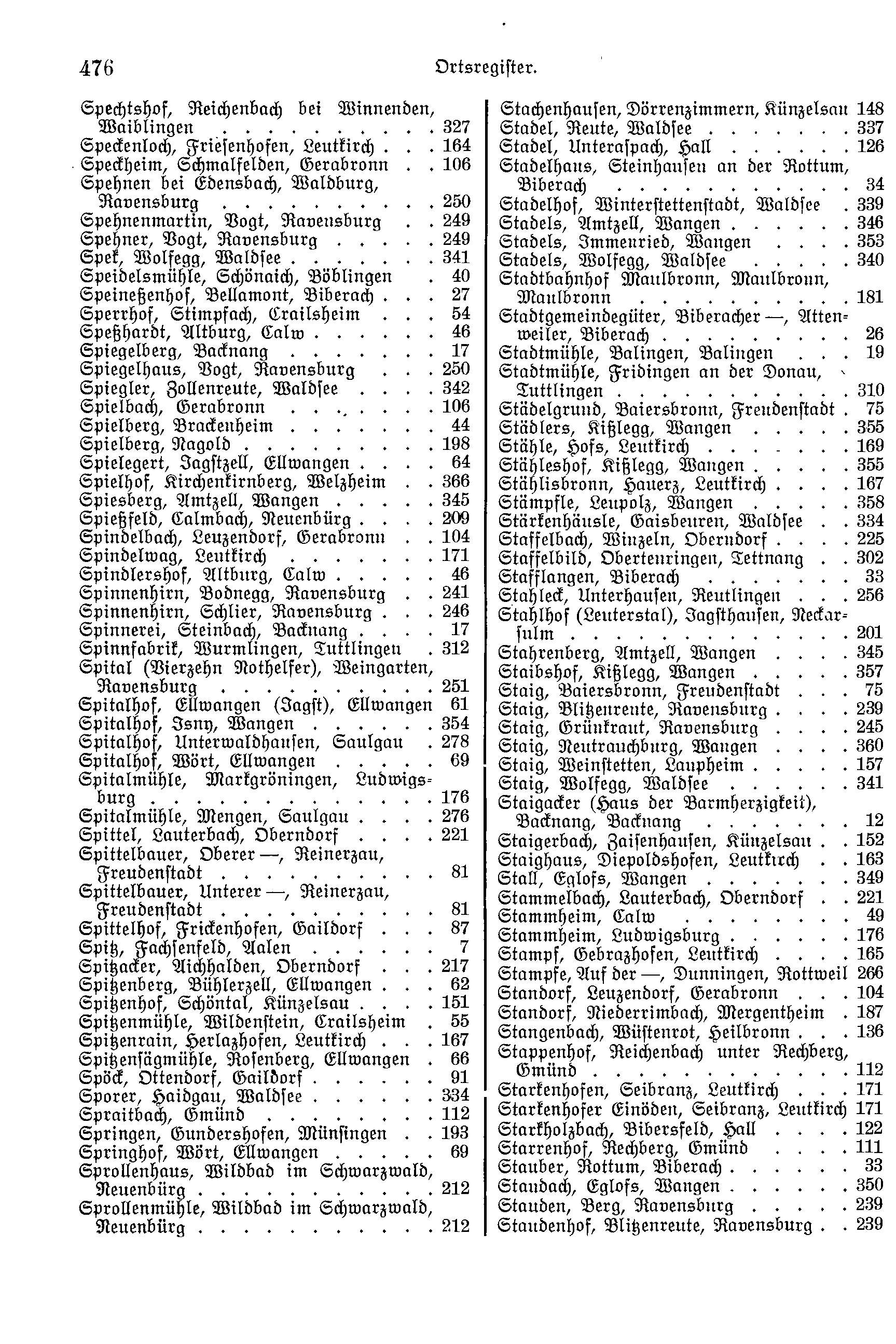 | Spehner, Vogt, Ravensburg | 249 | Stadels, Immenried, Wangen | |