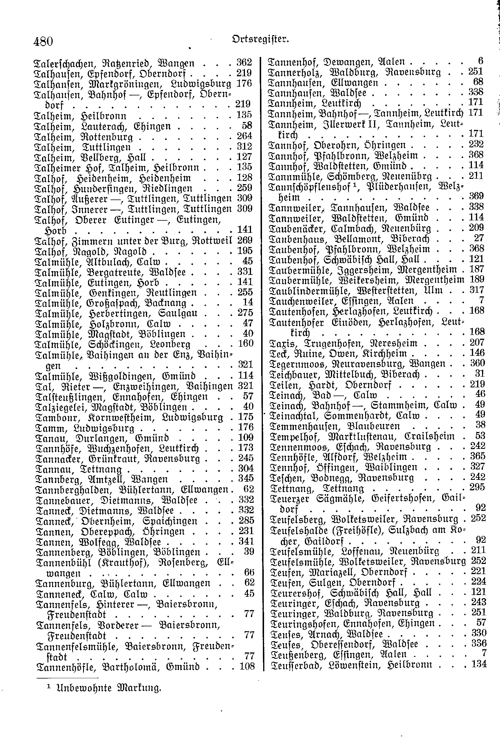| Talhof, Oberer Eutinger -, Eutingen, Horb | 141 | Tannweiler, Waldstetten, Gmünd | 114 |