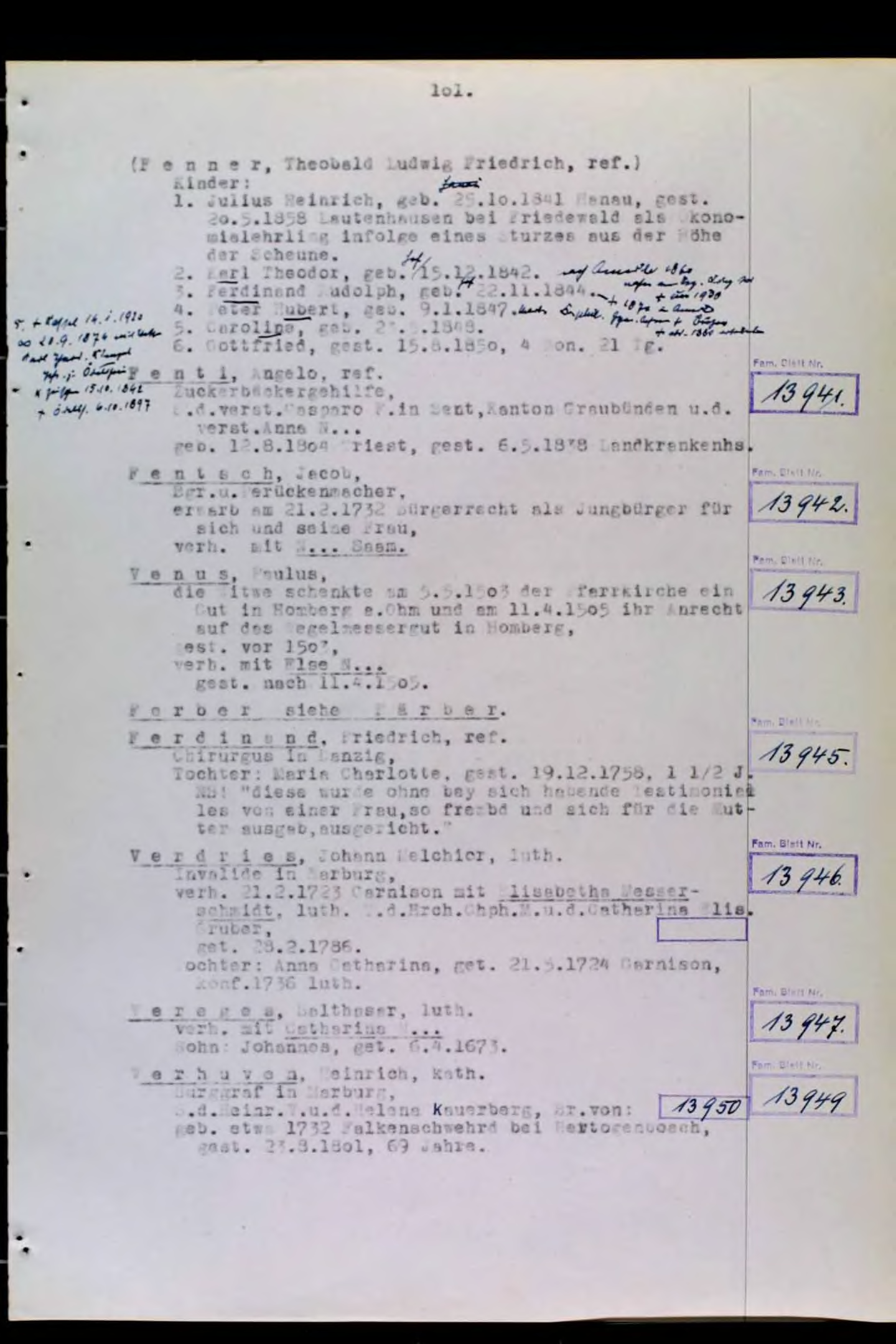 | Seit Fertigstellung des Marburger Sippenbuches 1950-1966 sind zahlreiche Ergänzungen und auch notwendige Korrekturen bekannt geworden. Zur aktuellen Seite existiert noch keine Ergänzunges- und Korrekturseite. Wenn Sie selbst Ergänzungen vornehmen möchten, wenden Sie sich bitte an Benutzer:Ernestus. |
