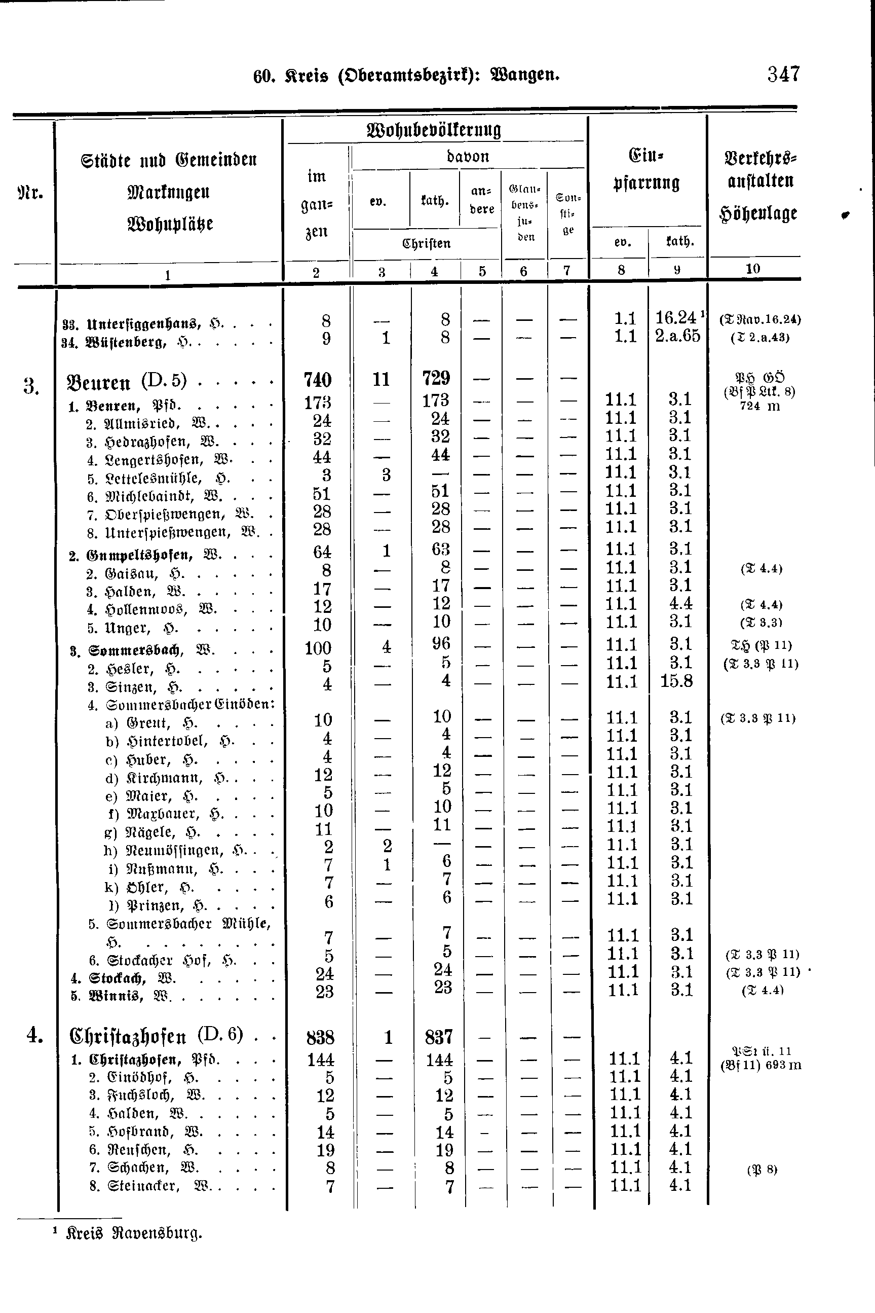 Wohnbevölkerung | Einpfarrung | Verkehrs-anstalten Höhenlage | ||||||