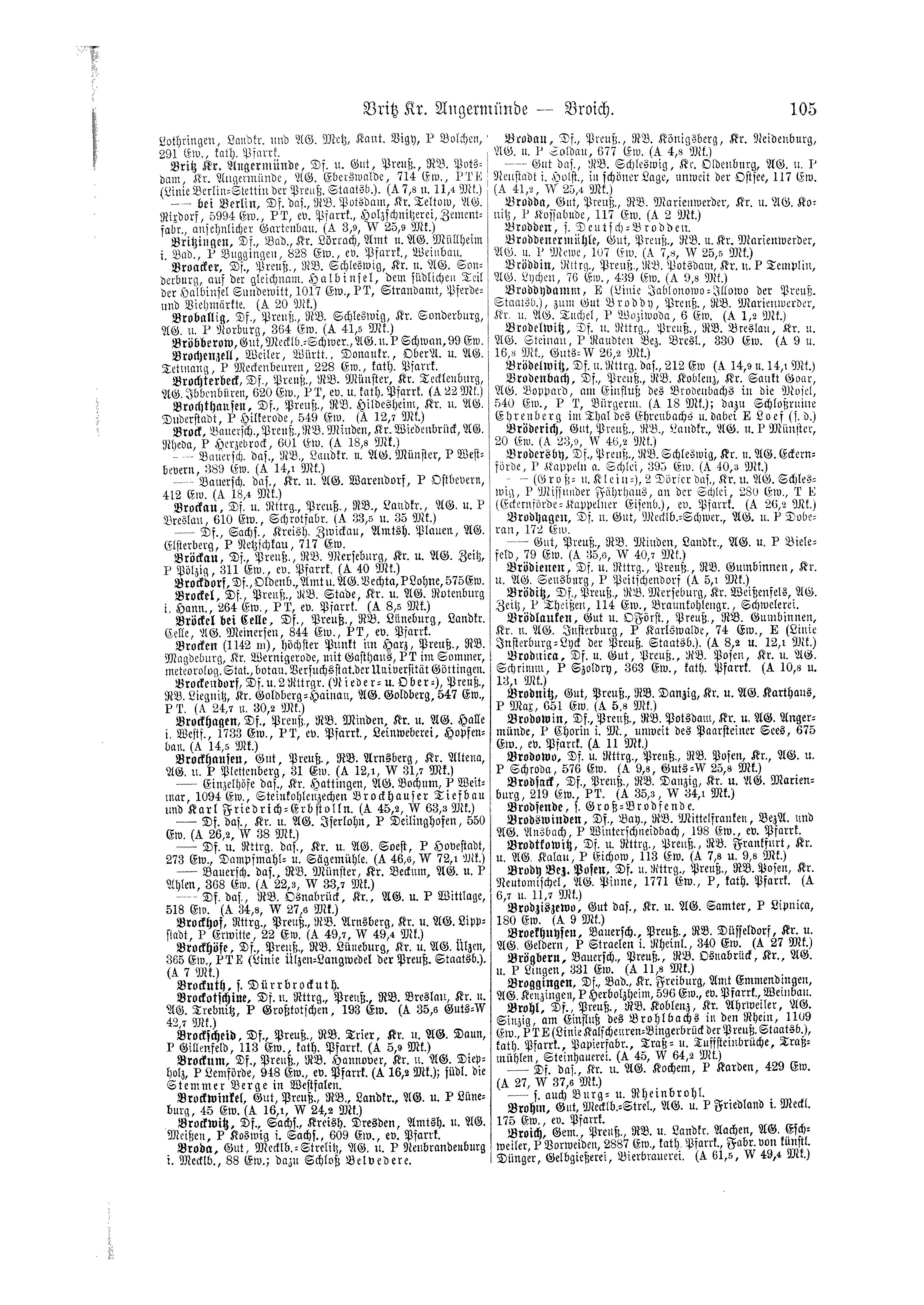 ;Bröddin: Rttrg., Preuß., RB. Potsdam, Kr. u. <tt>P</tt> Templin, AG. Lychen, 76 Ew., 439 Ew. (<tt>A</tt> 9,8 Mk.)